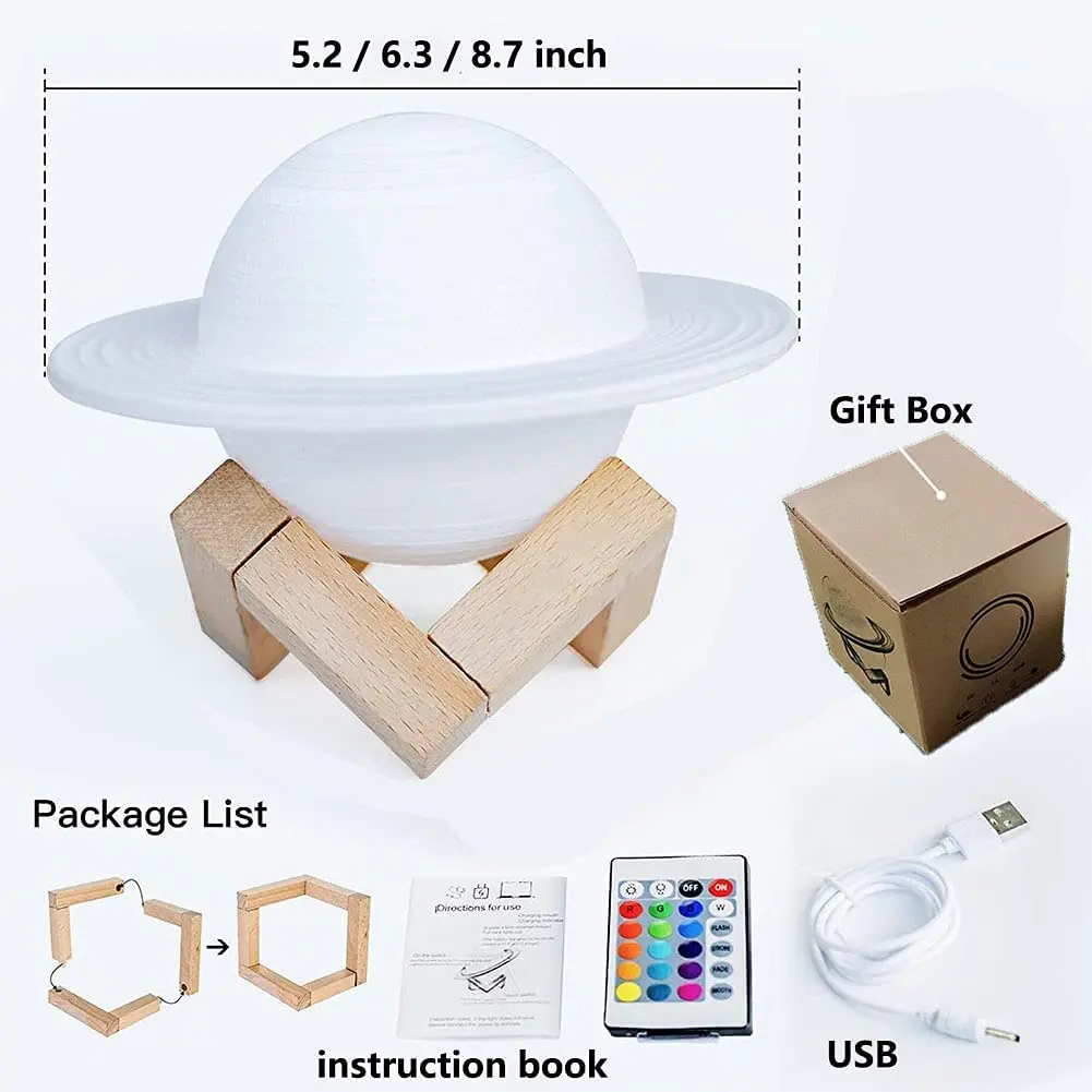 Лампа Homeiy с 3D рисунком Луны, ночсветильник, 131622 см, светодиодные лампы для Сатурна, детские светильники для спальни, Рождественское украшение, подарок для детей