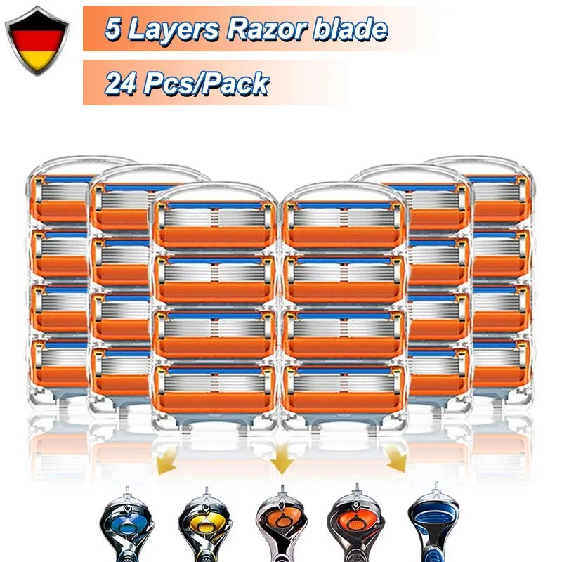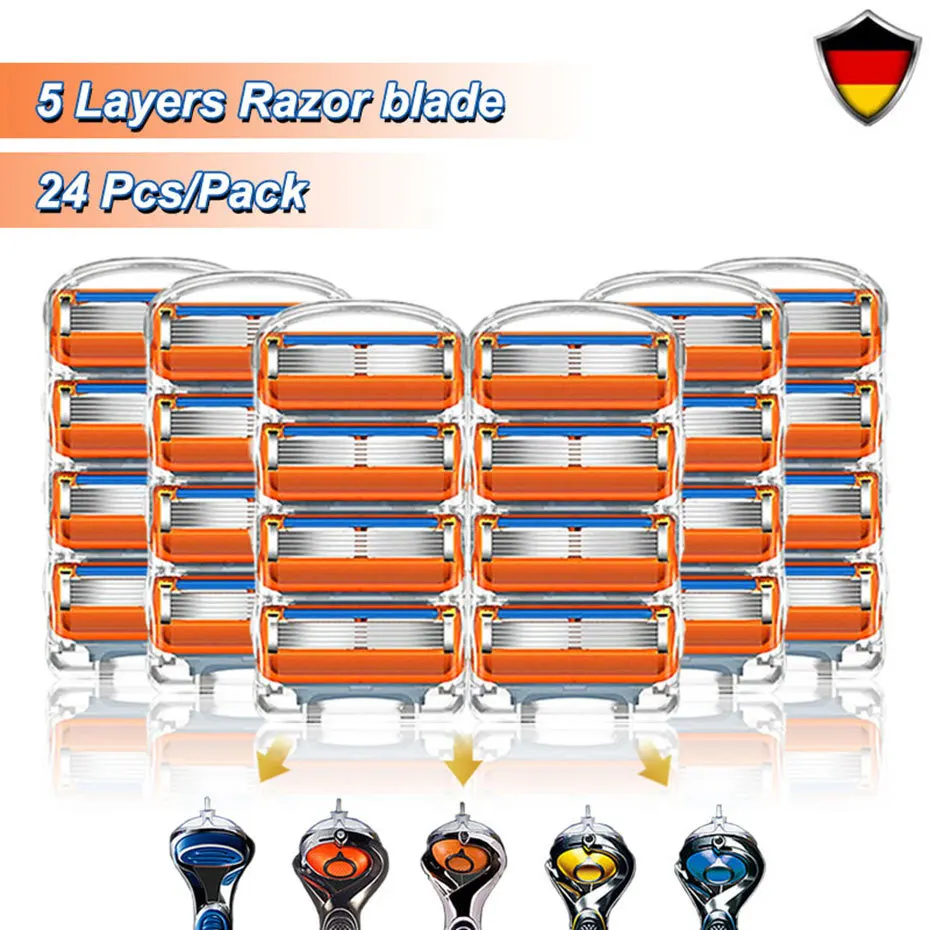 Безопасные лезвия для бритья, 5 слоев, сменные головки, подходит для Gillette Fusion Proglide Proshield, прямой бритвенный станок с 24 сменными лезвиями