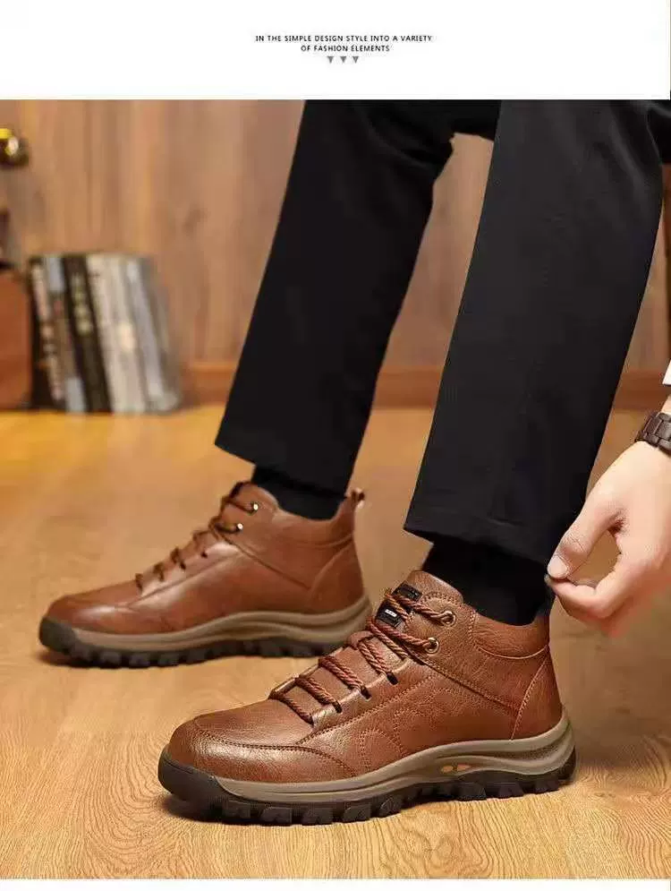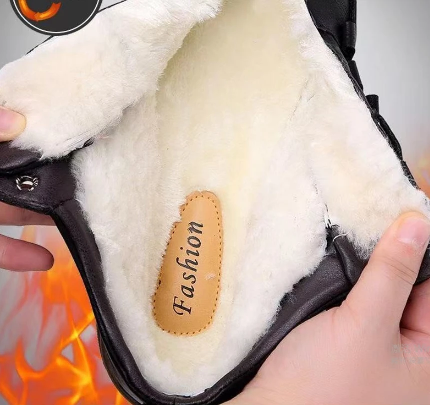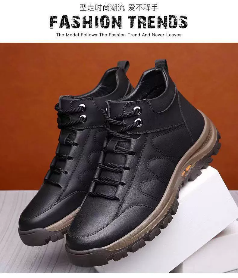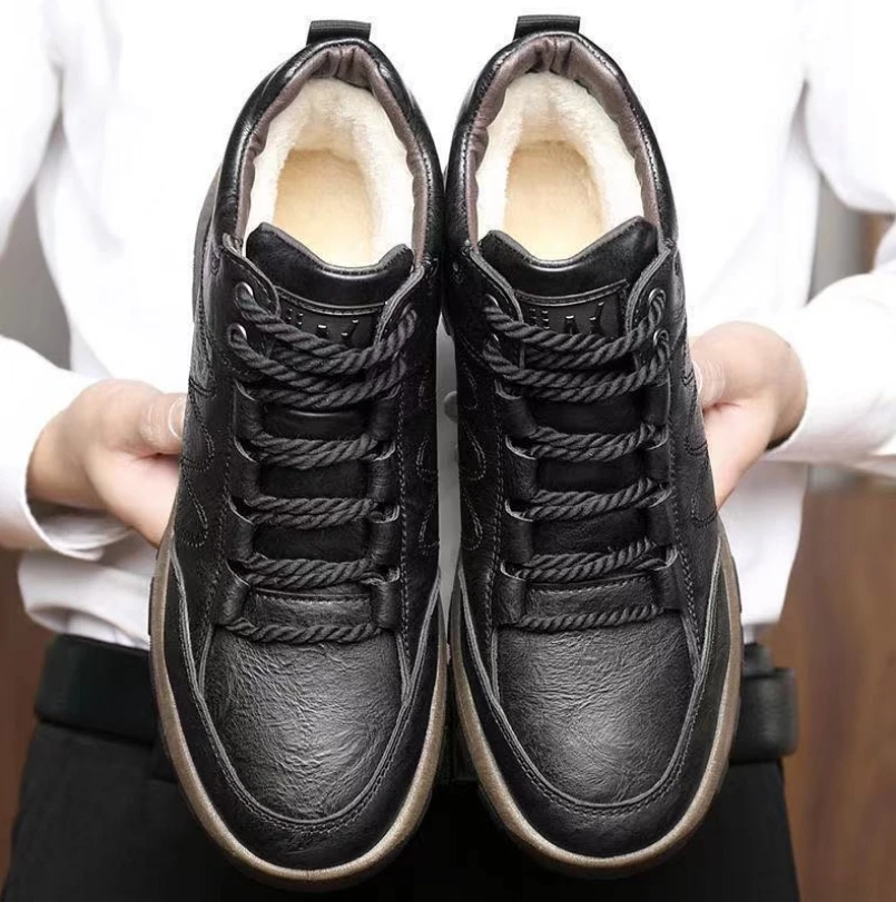 Осенне-зимние мужские кожаные кроссовки с вельветовым утеплителем, ...