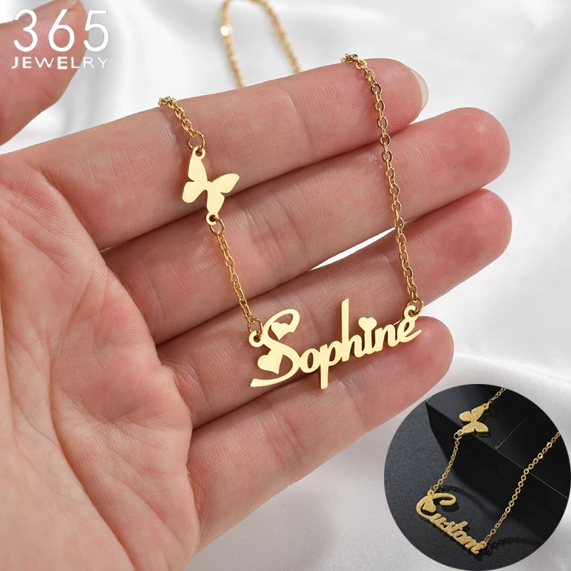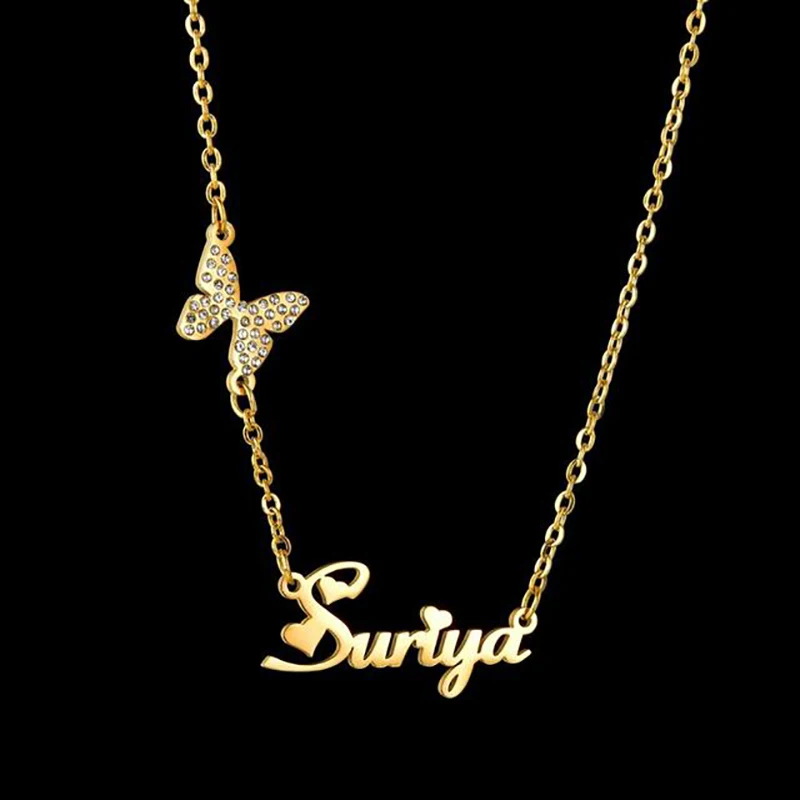 Индивидуальное ожерелье с именем на заказ, искусственная бабочка на цепочке, ожерелья из нержавеющей стали, ювелирные изделия, подарки для женщин, подвеска