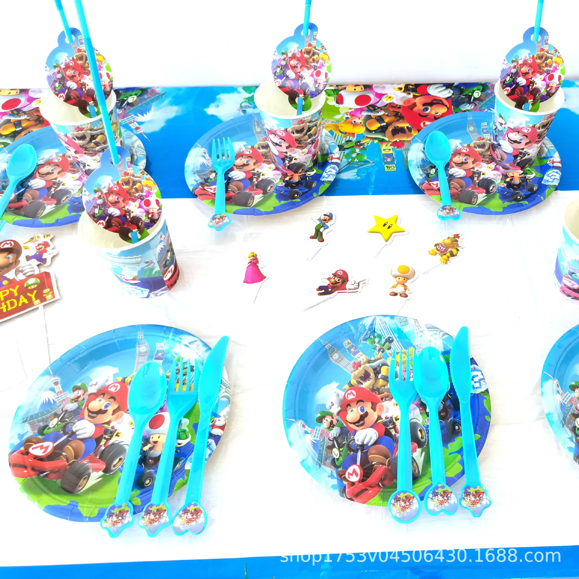 Набор одноразовой посуды для детей, с героями мультфильмов Супер Марио