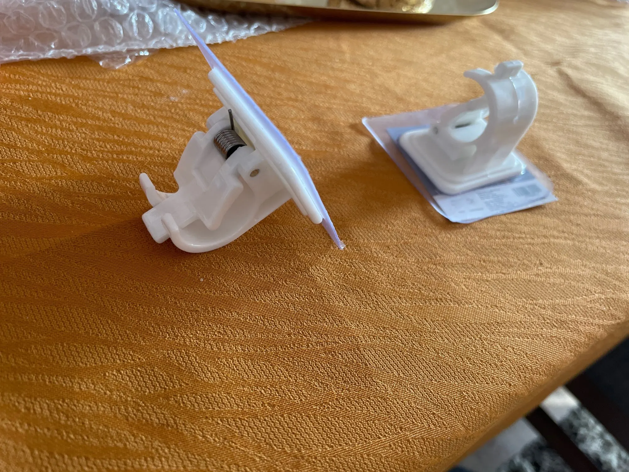 Держатели для карниза доставили быстро. Качество хорошее на вид, зажим хорошо прилегает.