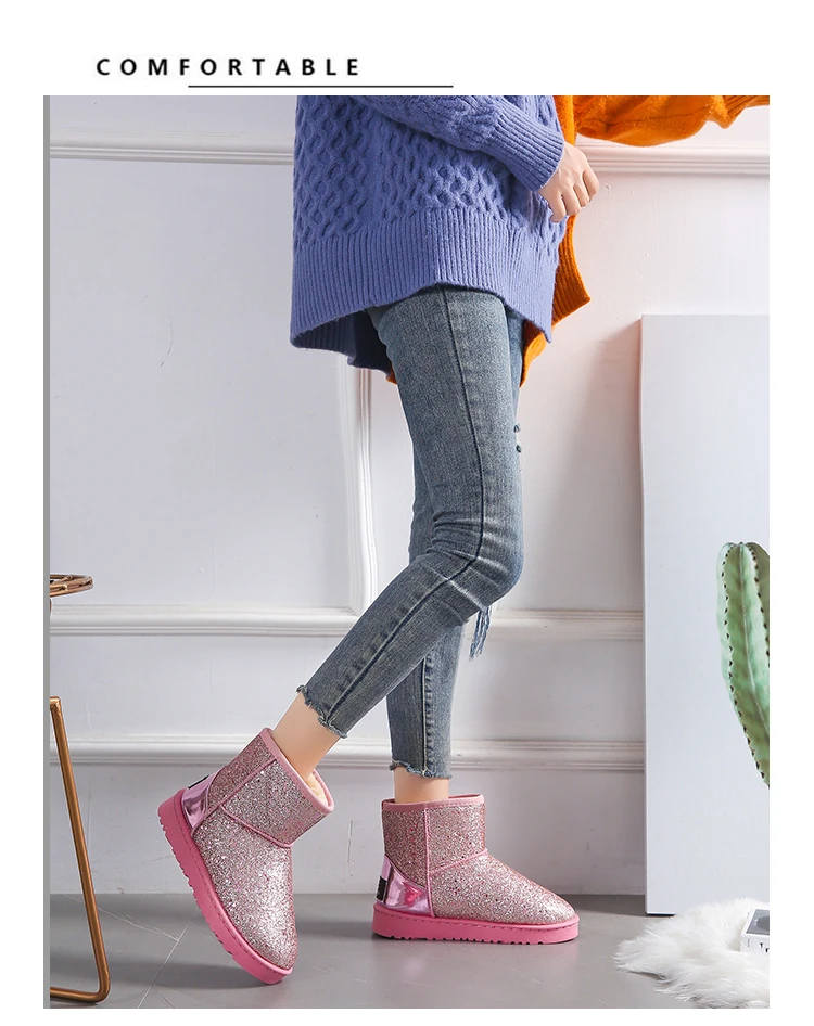 Водонепроницаемые женские ботинки, легкие меховые зимние ботинки, т...