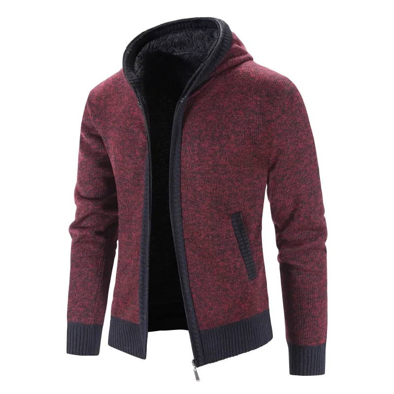 Новый флисовый Кардиган для мужчин, теплый свитер с капюшоном, толстый лоскутный Модный зимний свитер, мужской вязаный кардиган, пальто для мужчин