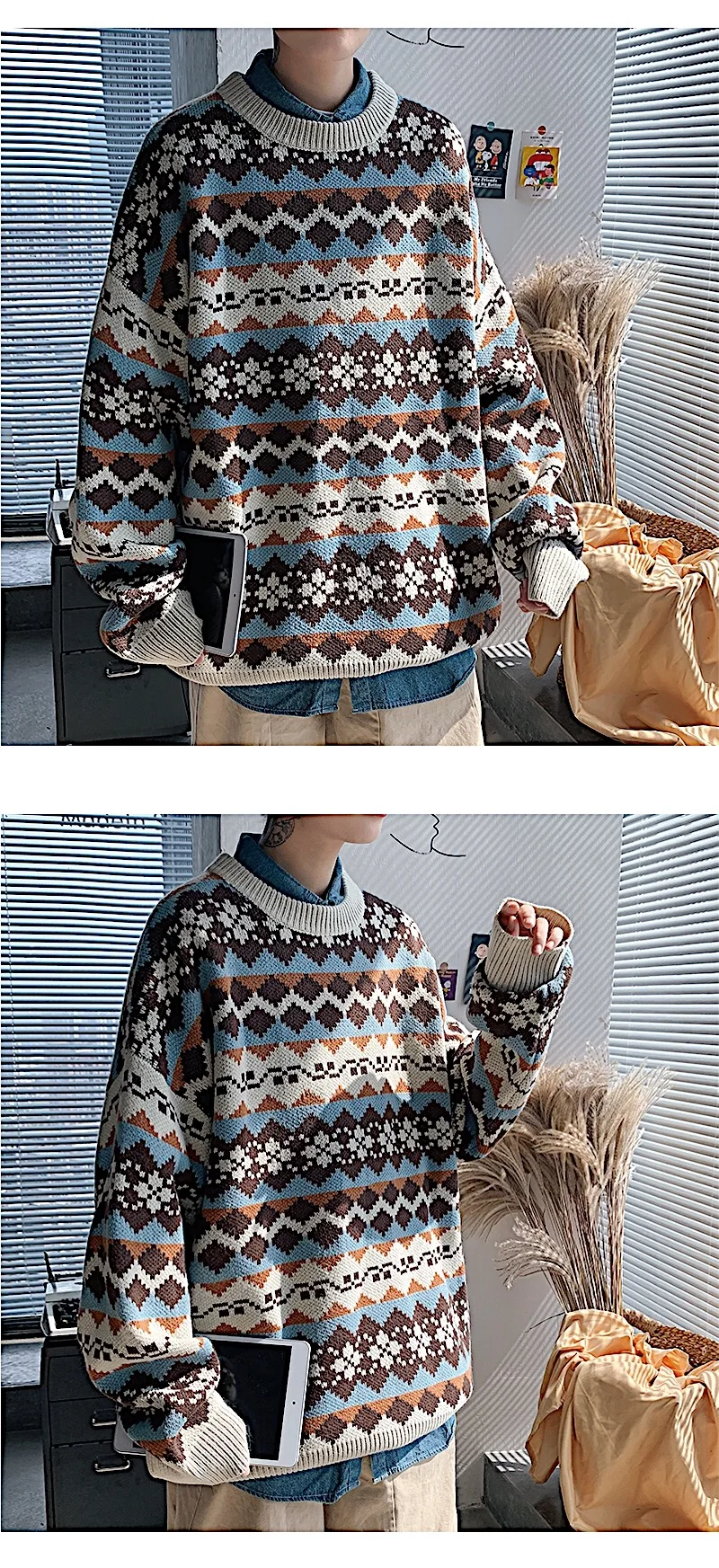 Мужской трикотажный свитер в стиле Харадзюку