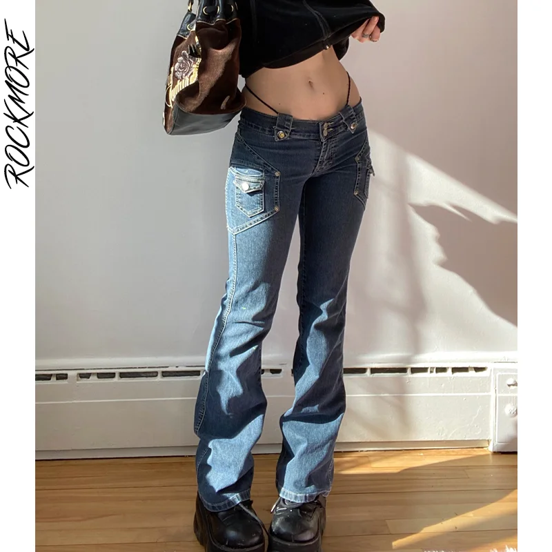 Женские джинсы с низкой посадкой Rockmore, обтягивающие джинсовые брюки, уличная одежда, эстетичные хлопковые джинсы с карманами, узкие брюки, Капри, корейский стиль, 90S, гранж
