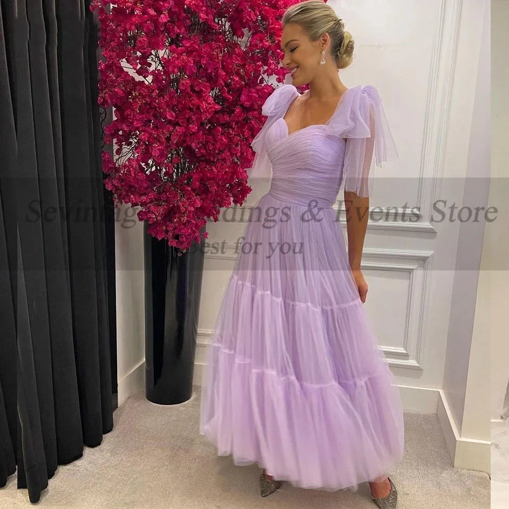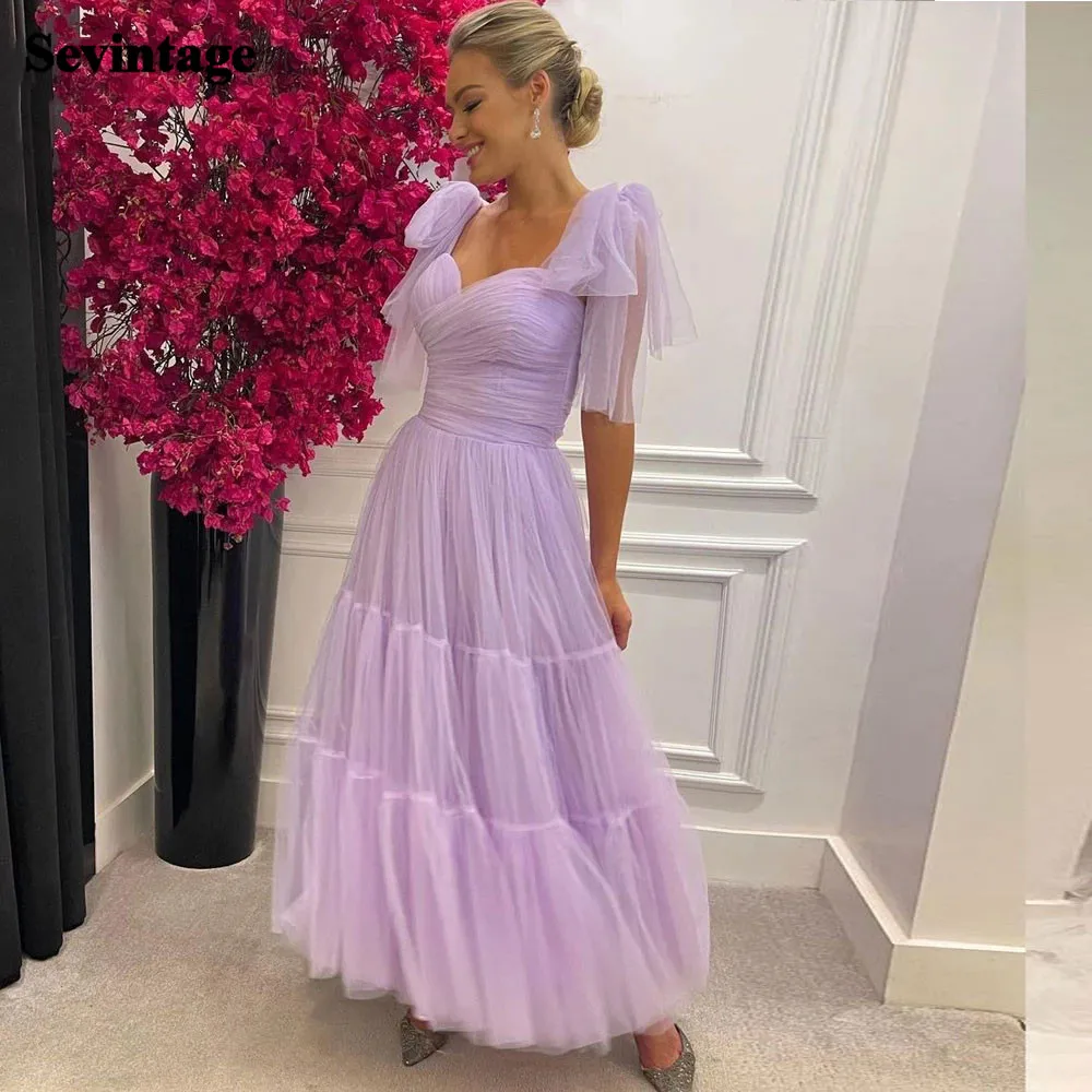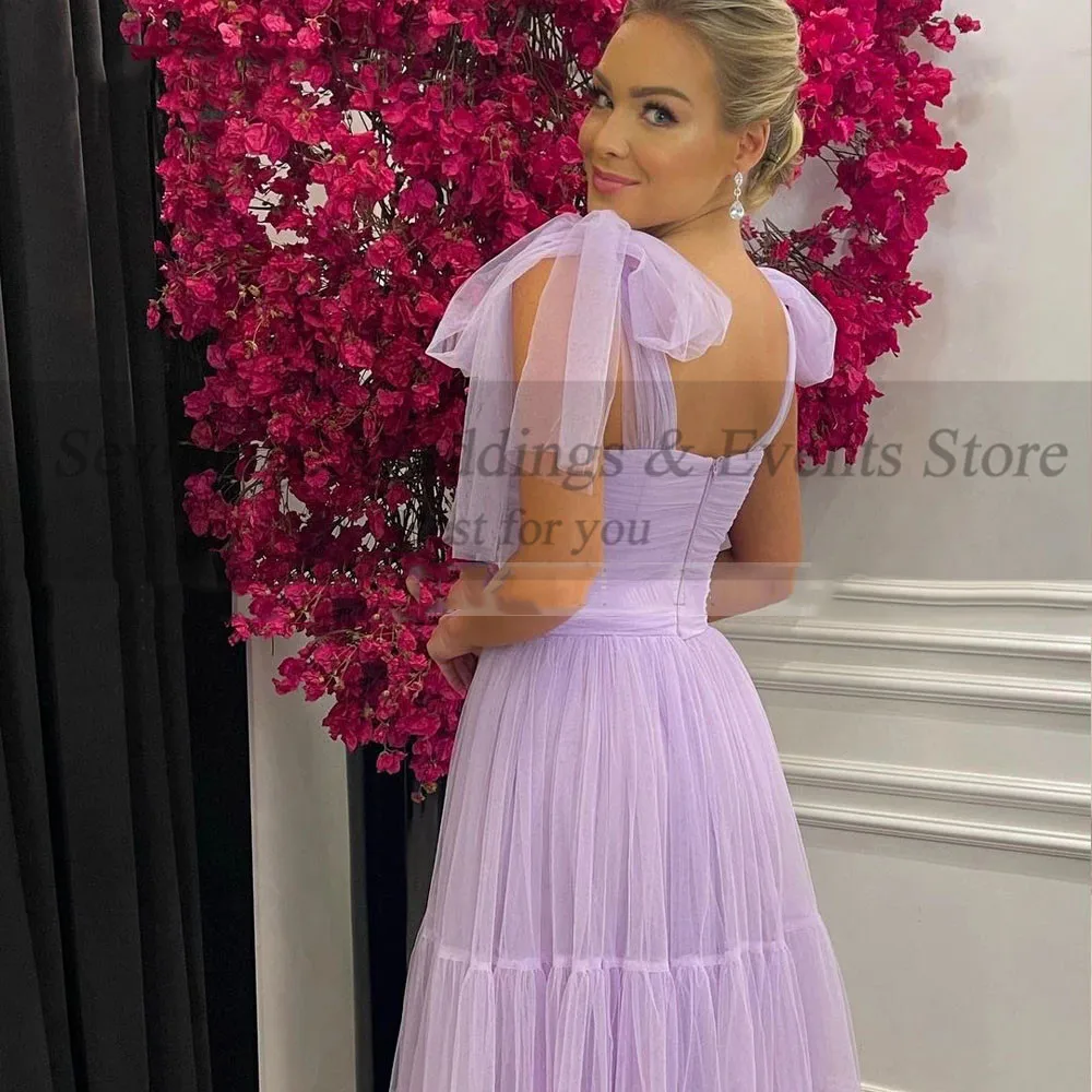 Женское вечернее платье Sevintage, плиссированное короткое платье до щиколотки из сиреневого тюля на бретельках с бантом, для выпускного вечера, 2022