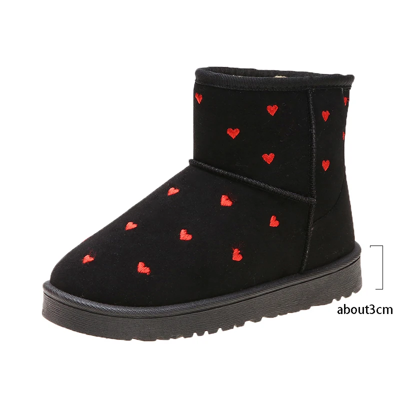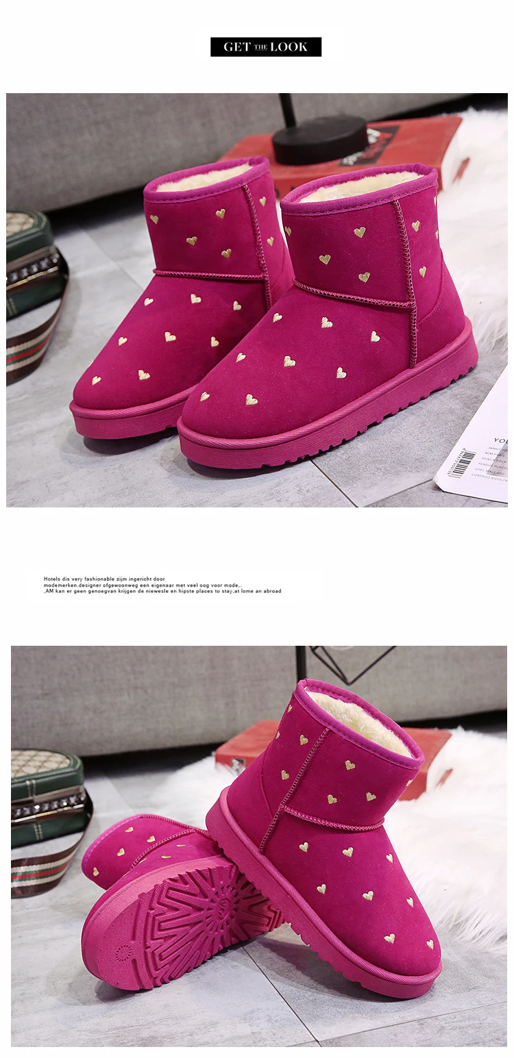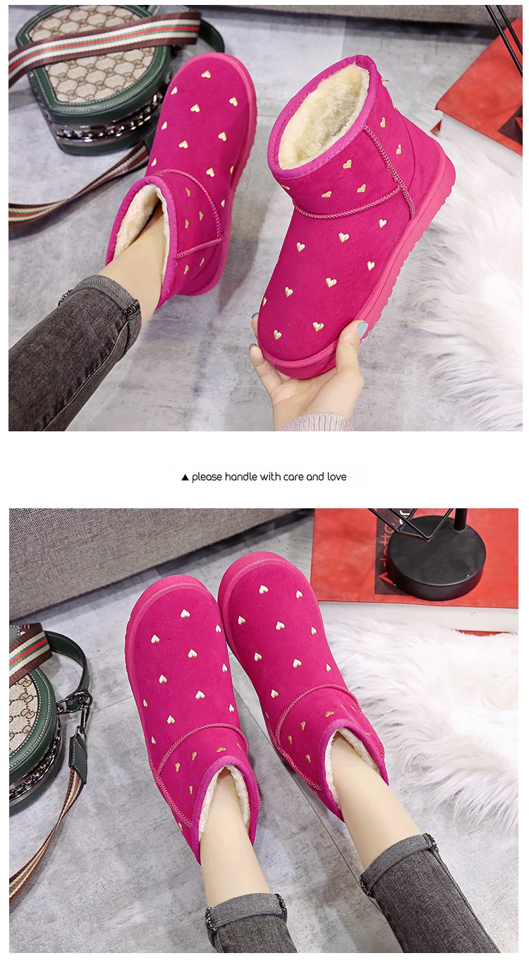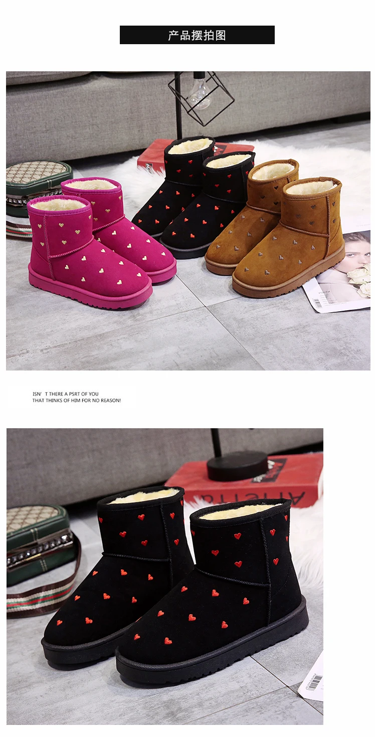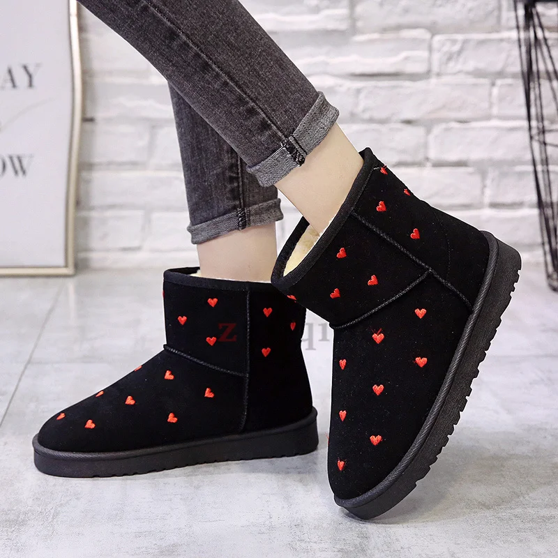 Женские зимние ботинки с узором Love, теплые зимние ботинки на толстой плюшевой подкладке, женская зимняя обувь с мехом, прямые поставки с завода, красного цвета, 2021