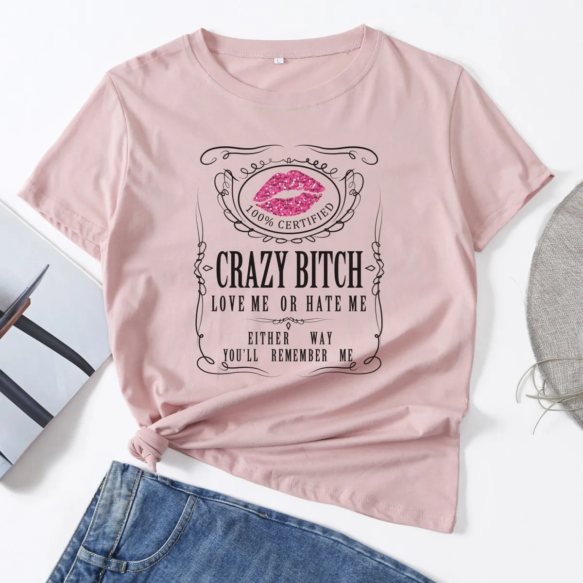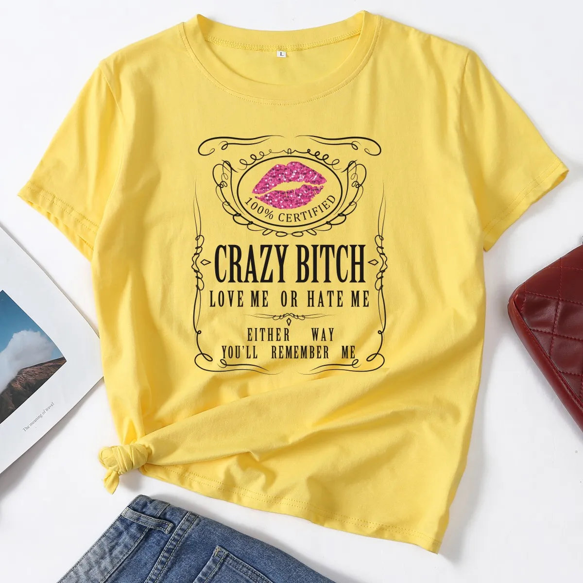 Женские футболки, повседневная футболка с коротким рукавом и принтом губ, летние топы с круглым вырезом для женщин, 100% хлопковые футболки с графическим принтом, женские футболки