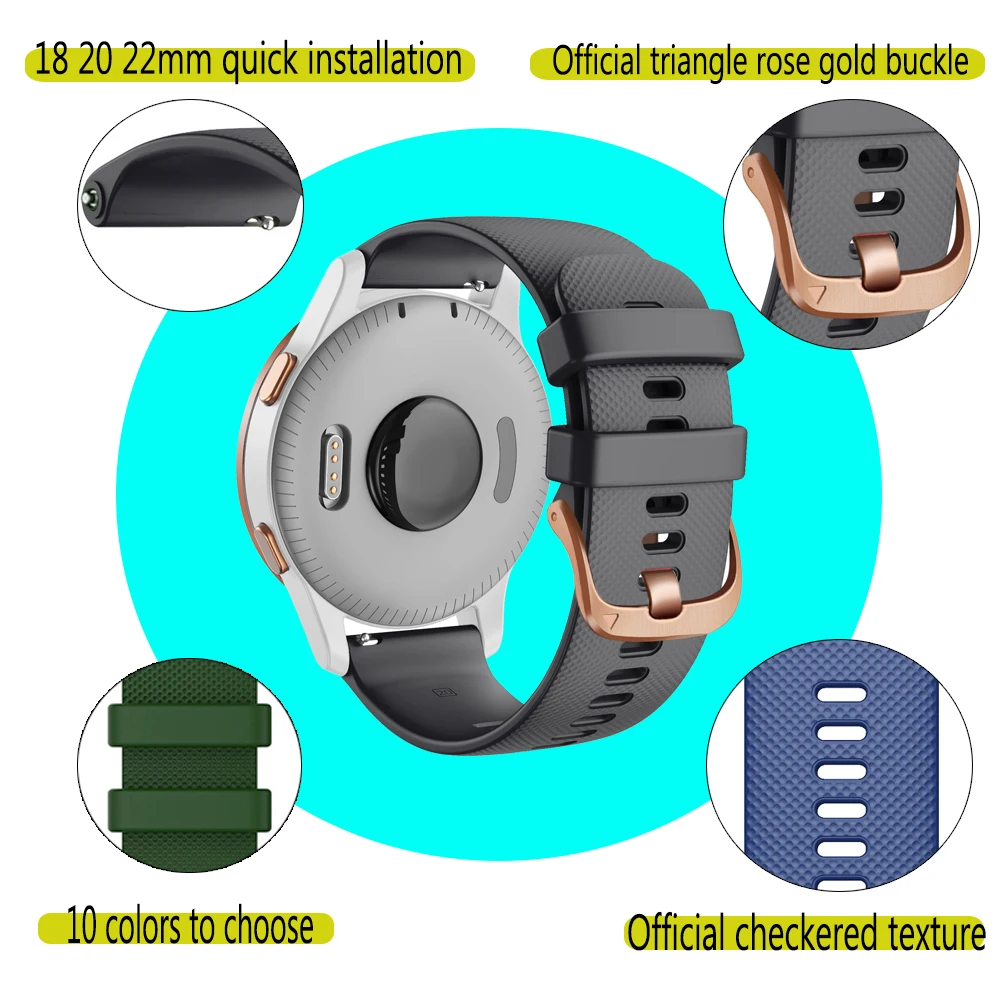 Сменный силиконовый ремешок 18 мм для Garmin Vivoactive 4S, ремешок...