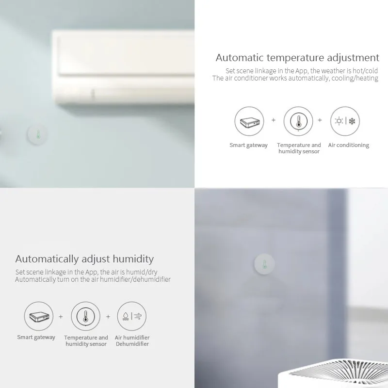 4. Новые добавлены с технологией компенсации температуры с Умной связью сцены с вашим кондиционером и увлажнителем воздуха, предлагая вашему дому с наиболее удобной температурой и влажностью, чтобы наслаждаться нашей умной жизнью.