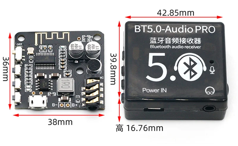 Переключение режима зарядки и разрядки в это время, после чего Bluetooth автоматически перезагружается, автоматически подключается и поддерживает предыдущее состояние воспроизведения) функция входящего голосового вызова: после подключения Bluetooth, включите звуковой режим вызова в настройках Bluetooth. Если телефонные звонки, вы можете ответить или повесить телефон через кнопку PLAY/STOP. Вы можете отправить товар напрямую от микрофона оригинальная гарнитура (при условии, что гарнитура имеет функции вызова, который представляет собой 4-сегментный тип и т. п.) либо Встроенный микрофон (по умолчанию), подробнее см. Описание функции. Когда используется звуковая карта компьютера: Закрепите колодки в двух коробках, соответствующих звуковой карте на задней части модуля, затем подключите его к usb-интерфейсу компьютера через usb-кабель, который может использоваться в качестве звуковой карты. То есть звук, воспроизводимый компьютером, выводится через аудиоинтерфейс модуля. Подробнее см. Описание функции. (По умолчанию не включено) размер изделия: