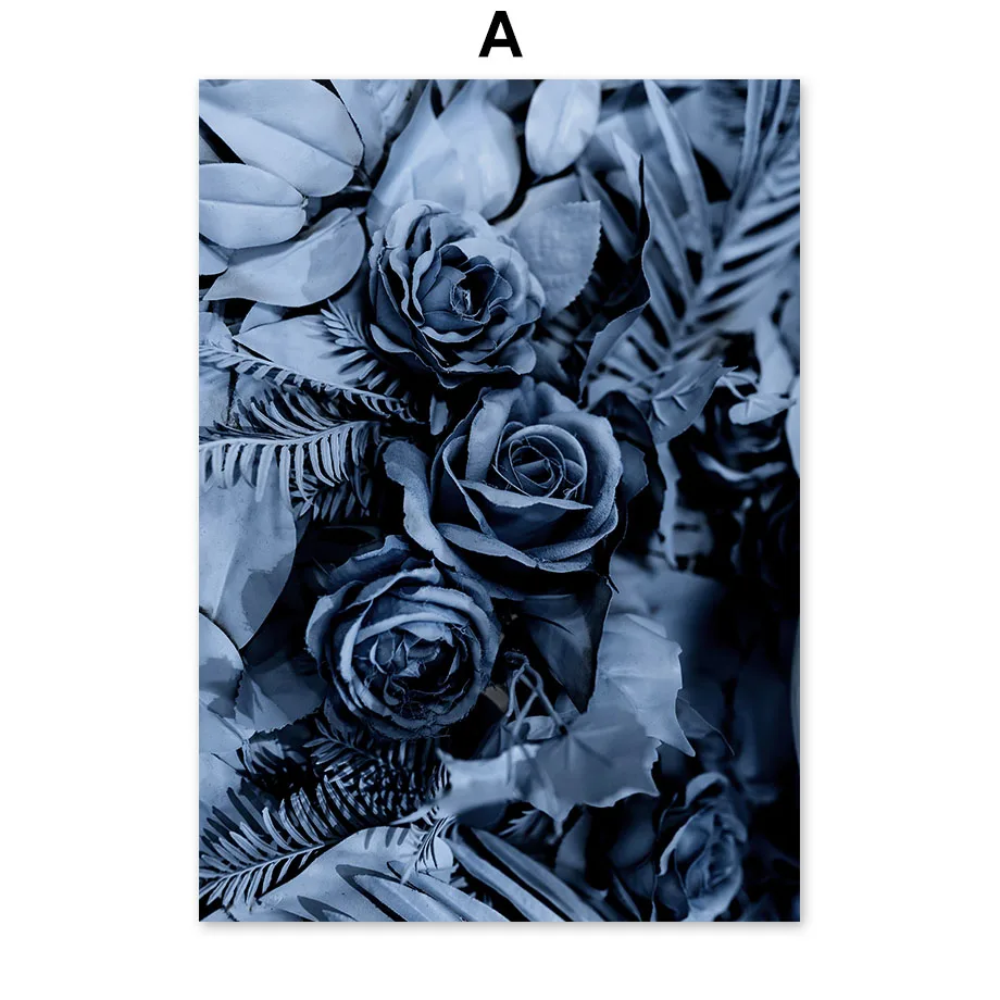 Синий одуванчик пион Пальмовые Листья росы настенная живопись холст...