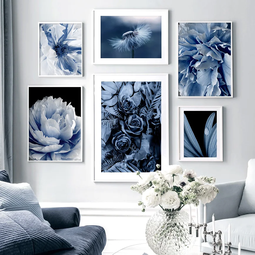 Картина на холсте, настенное искусство, синее Одуванчик, пион, Пальмовые Листья, плакаты и принты растений, декор для гостиной, рождественский подарок