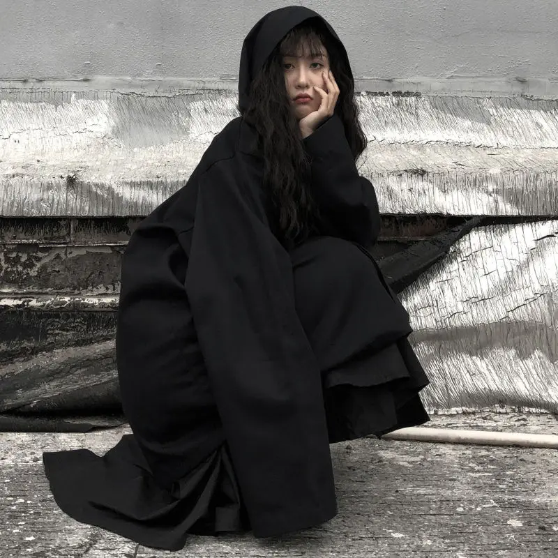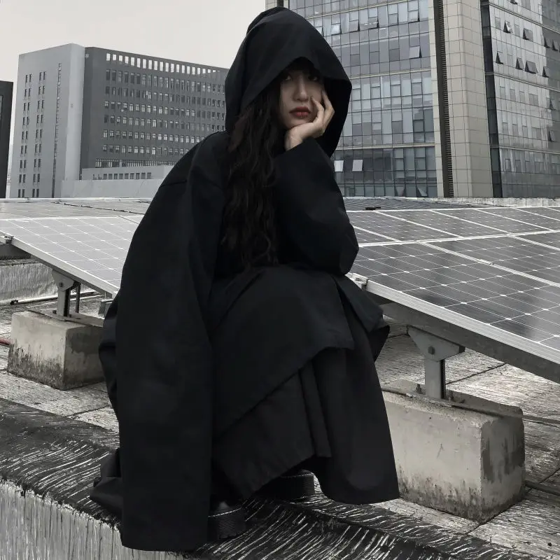 Тренч женский черный с капюшоном, винтажная прямая однобортная ветр...