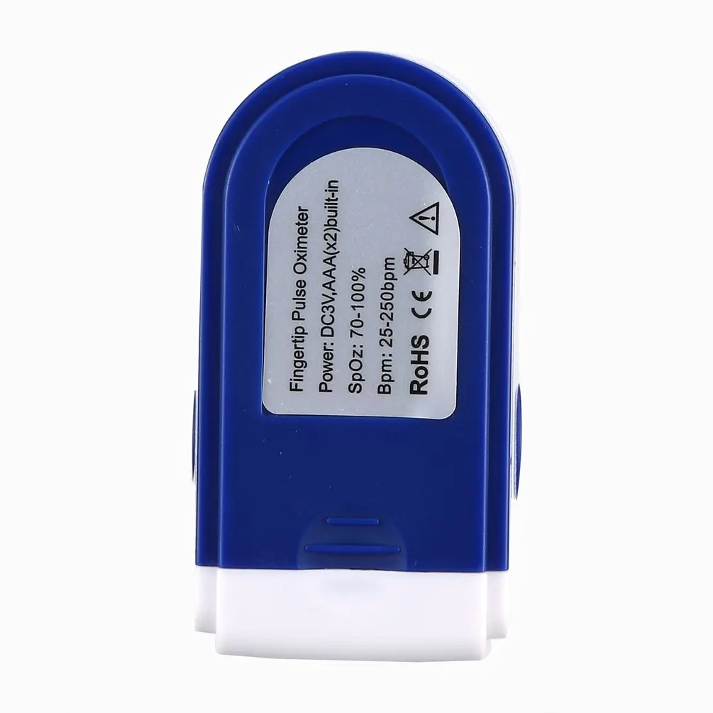 Источник питания: 2 аккумулятора * AAA (не входит в комплект)Размер: 53*27*28 ммМатериал: пластикЦвет: синий + белыйТип экрана: светодиодныйПотребляемая мощность: менее 30 мАНапряжение: DC3.0VРазрешение экрана: 128*64Диапазон измерения SpO2: 0% -100%Измерение PR: 30-250BPM