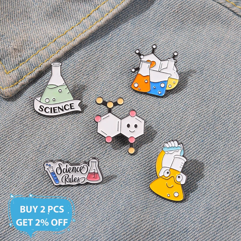 Эмалированные штифты с молекулярной формулой, коническая колба, аксессуары для ювелирных изделий, рюкзак, подарок для друга