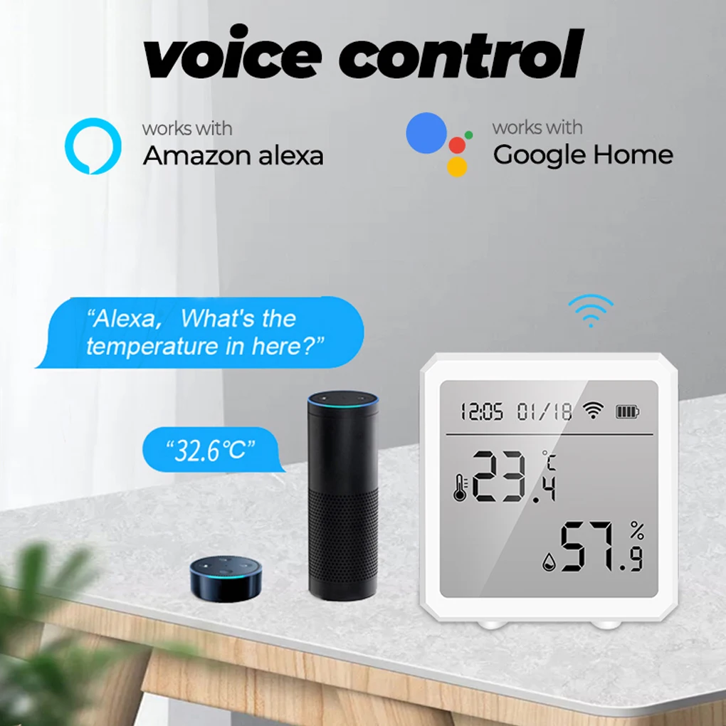Wi-Fi датчик температуры и влажности Tuya, комнатный гигрометр, термометр с ЖК-дисплеем, поддержка Alexa Google Assistant