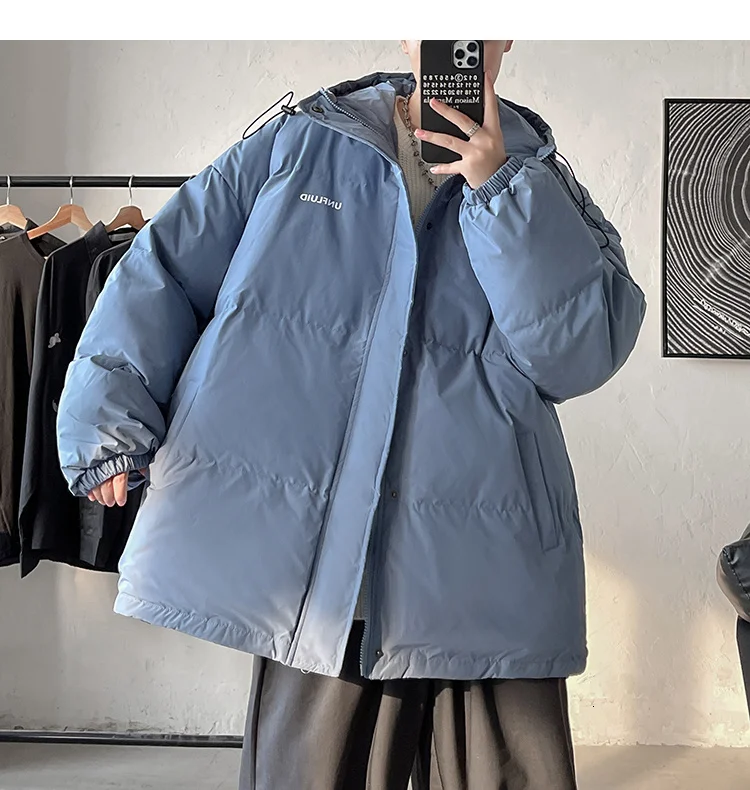 Парка Hybskr мужская оверсайз с капюшоном, модная утепленная куртка в Корейском стиле, с хлопковой подкладкой, теплая парная в стиле Харадзюку, 6 цветов