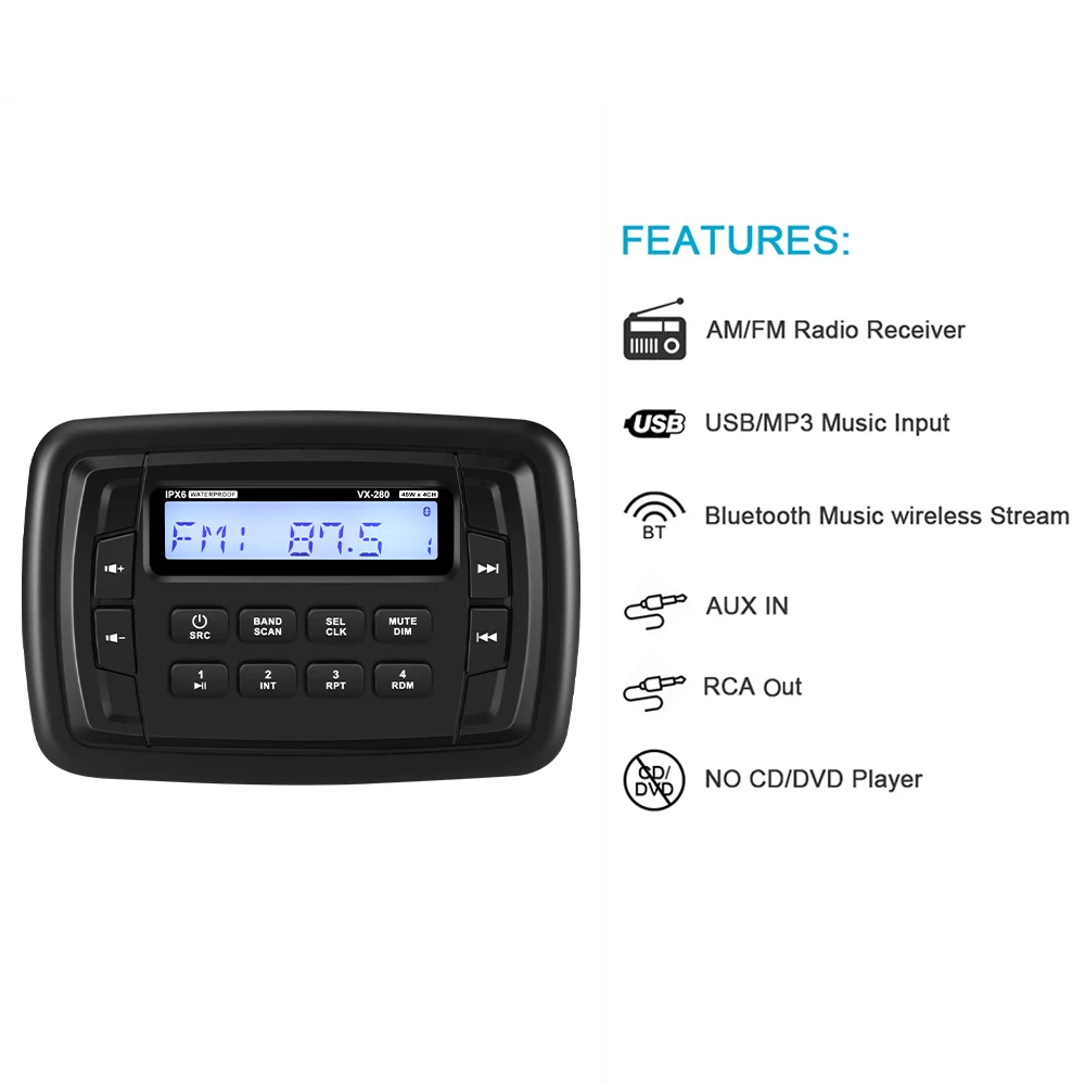 Водонепроницаемый автомобильный радиоприемник, стереопроигрыватель, Автомобильный MP3-плеер с Bluetooth, 4-дюймовый динамик для лодки на открытом воздухе, квадроцикла, UTV динамик s + антенна