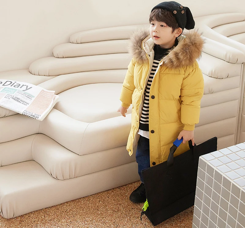 Зимняя куртка, повседневное пуховое пальто с капюшоном и меховым воротником для мальчиков и девочек, парка для маленьких девочек, теплые длинные пальто для подростков, детские пальто