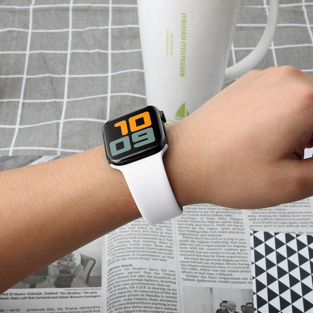 Ремешок силиконовый для Apple Watch, спортивный браслет для смарт-часов iWatch Series 6 se 5 4 3 7, 44 мм 40 мм 41 мм 38 мм 45 мм 42 мм