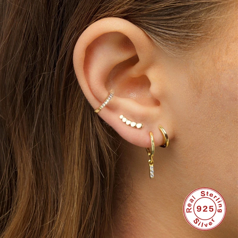 Простые милые маленькие кольца для девочек, серебряные серьги 925 пробы в стиле бохо, Классические минималистичные очаровательные серьги-гвоздики, тонкие кольца
