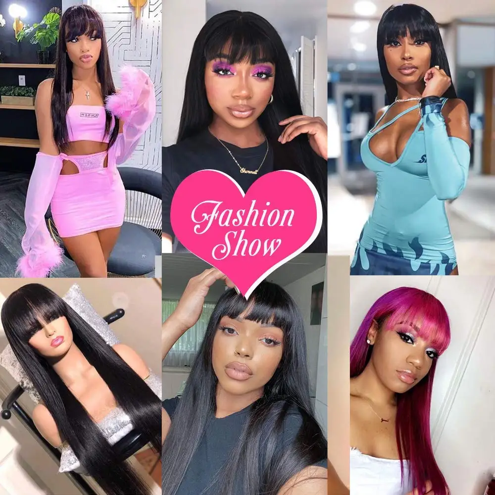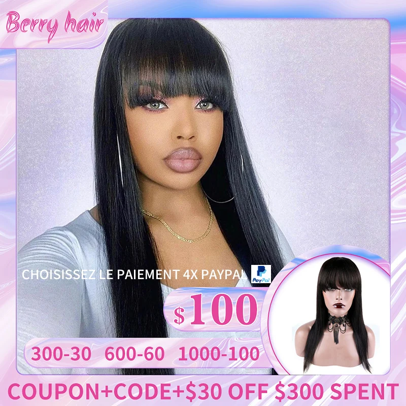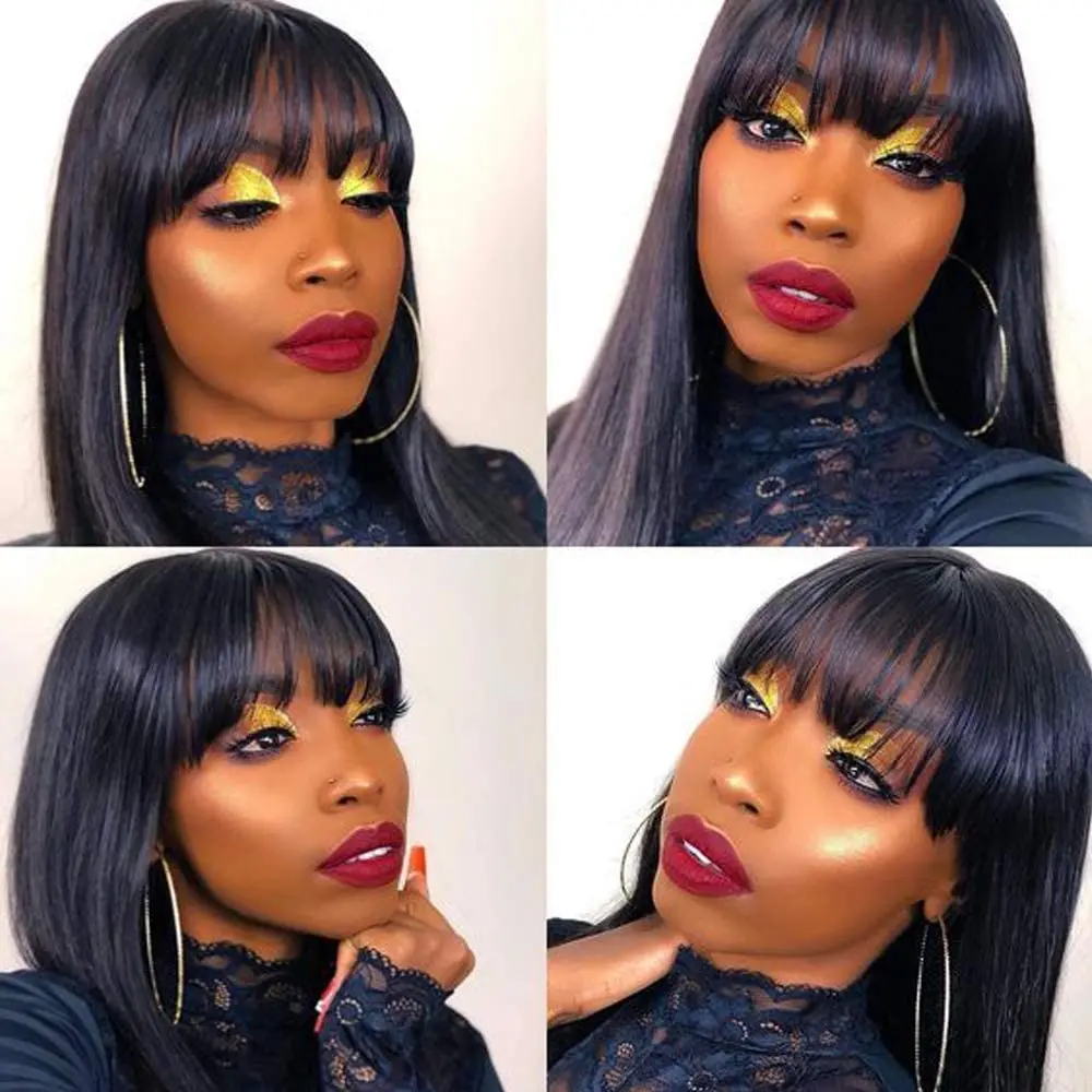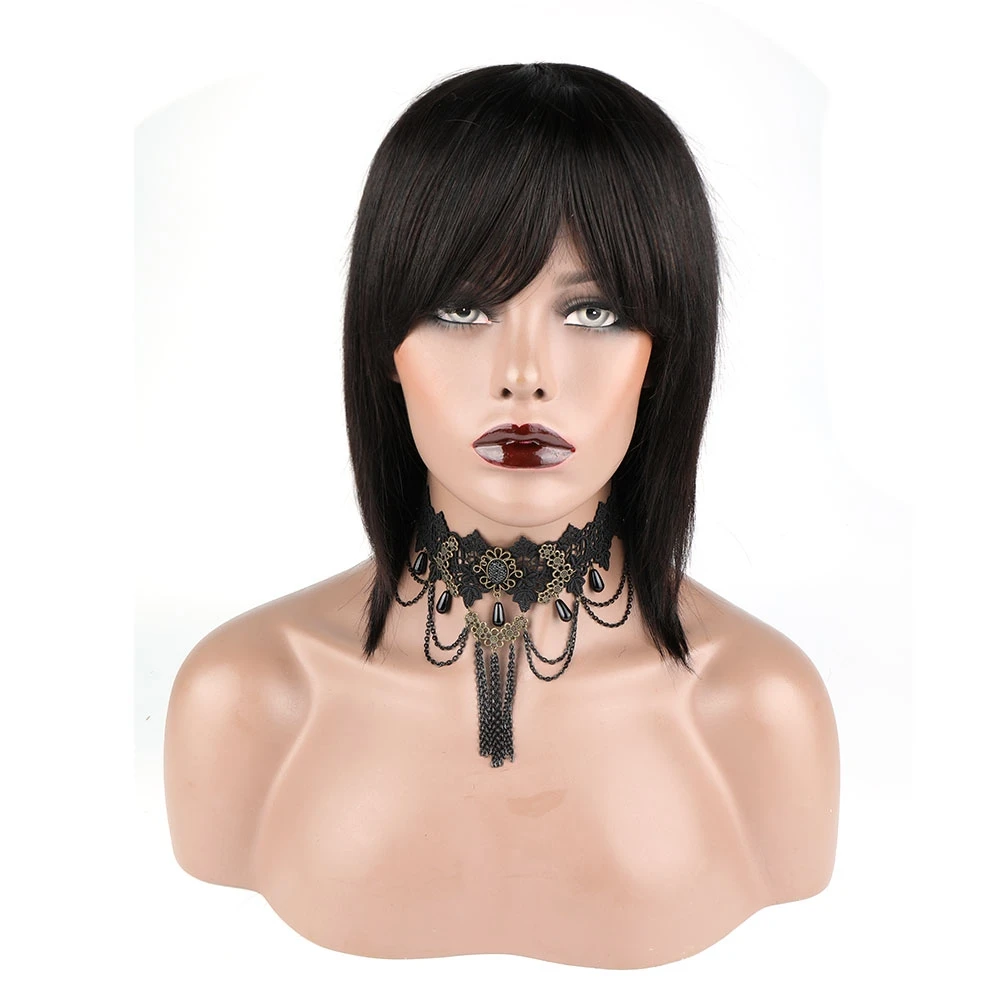 Парик Из прямых человеческих волос с челкой, 10-22 дюйма
