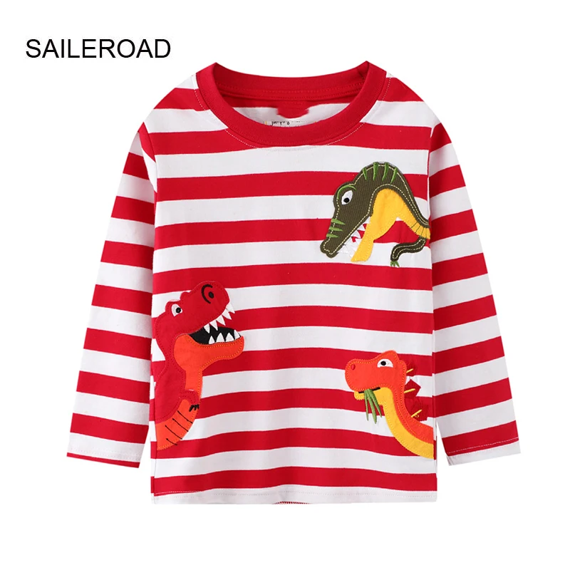 Новинка 2021, футболки SAILEROAD в полоску с длинными рукавами и изображением животных, динозавров, осенняя одежда для мальчиков, блузка для мальчиков, Модные топы для детей