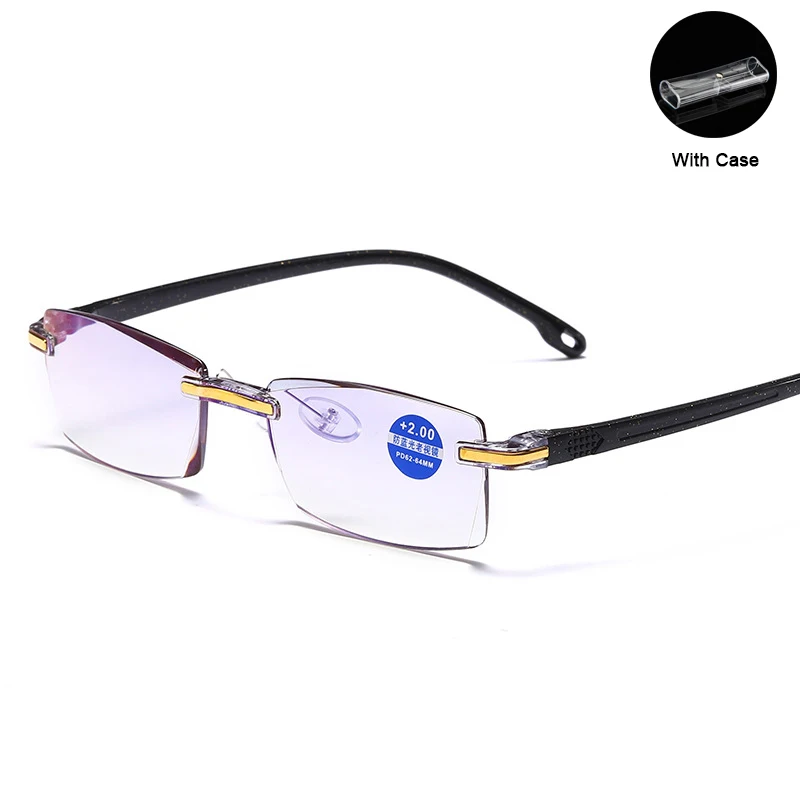 Квадратные очки для чтения без оправы с защитой от сисветильник, женские и мужские бескаркасные пресбиопические очки с чехлом + 1,0 4,0