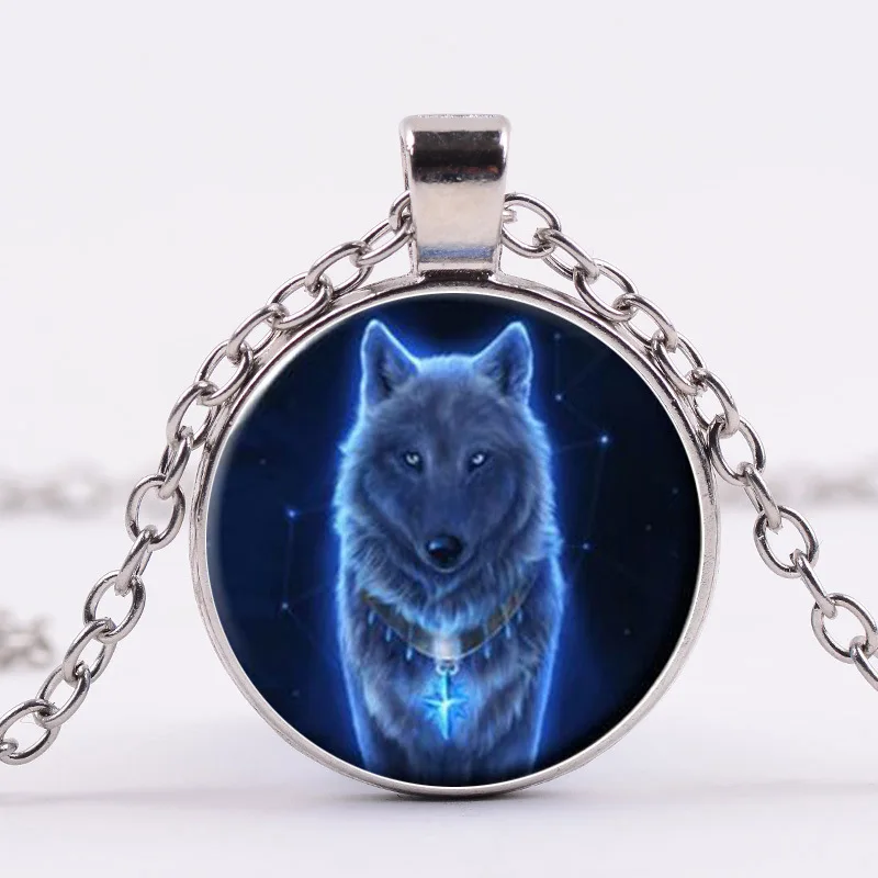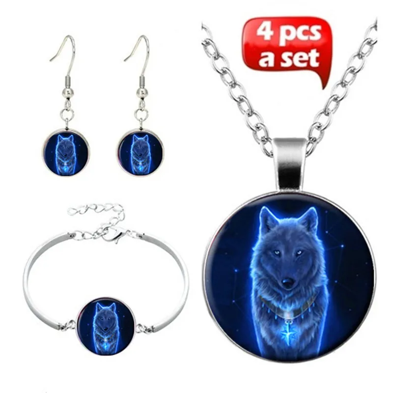 Ожерелье, браслет и серьги из кабошона с изображением снежного волка, звездного неба, волка, всего 4 шт.