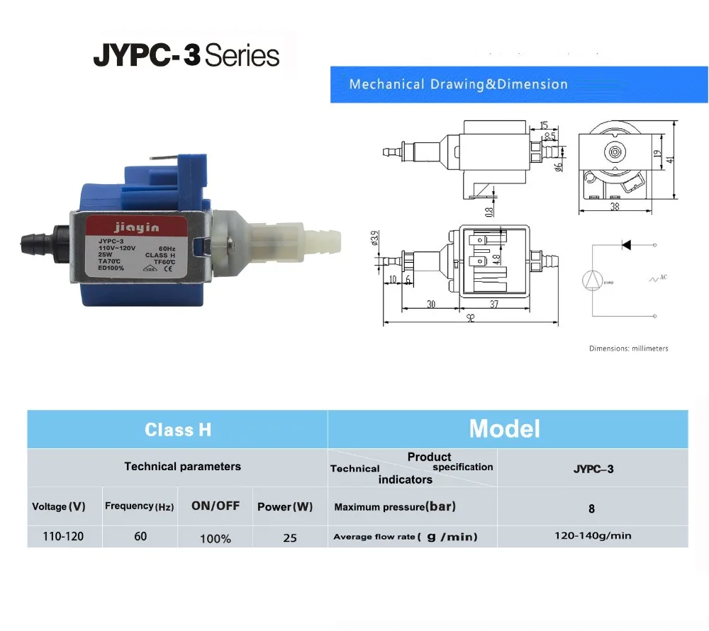 JYPC-8 электромагнитный соленоидный насос, водяной газ, всасывание для утюгов, Паровая швабра, отпариватель для одежды, кофемашина 15 Вт 50 Гц AC