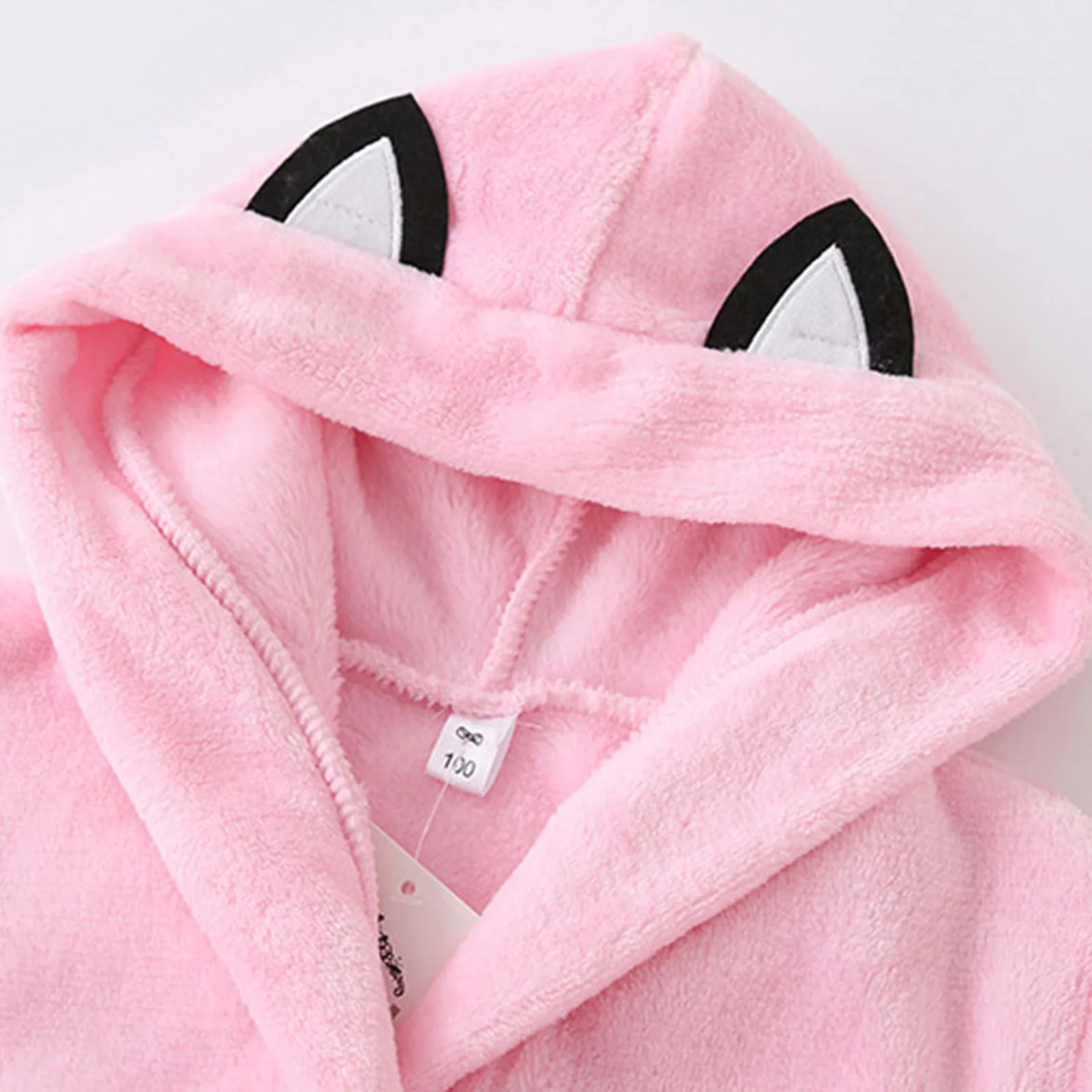 Мультяшные халаты для маленьких мальчиков и девочек, теплая фланелевая Ночная Пижама с капюшоном