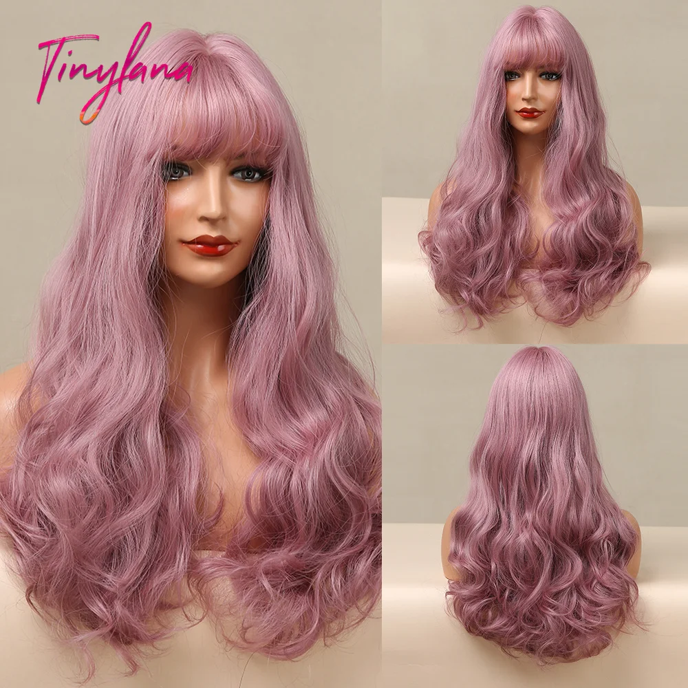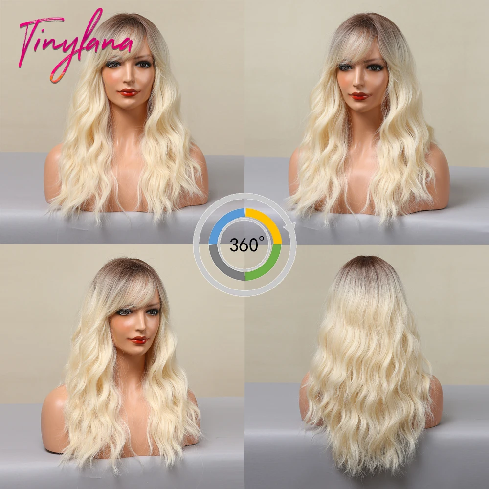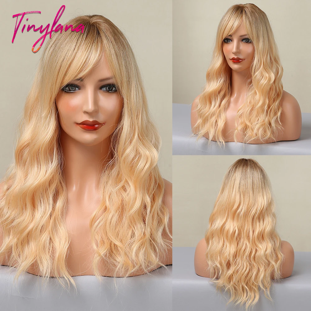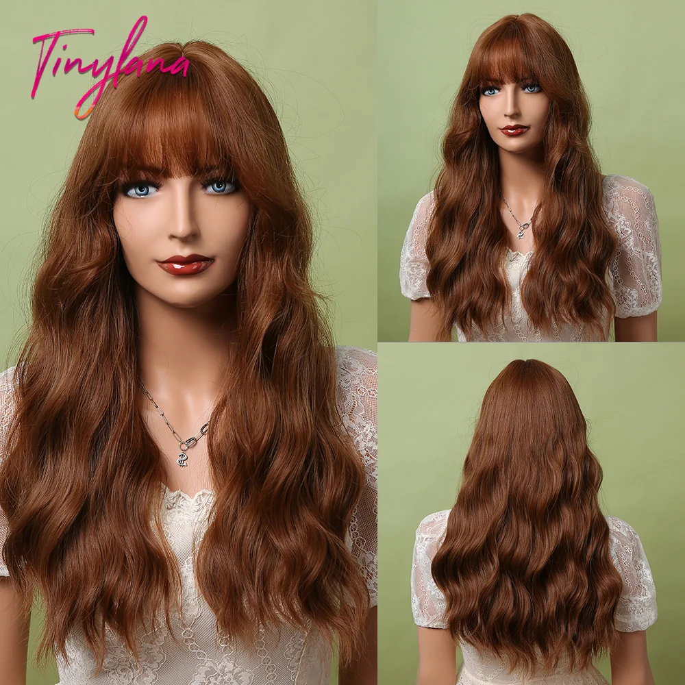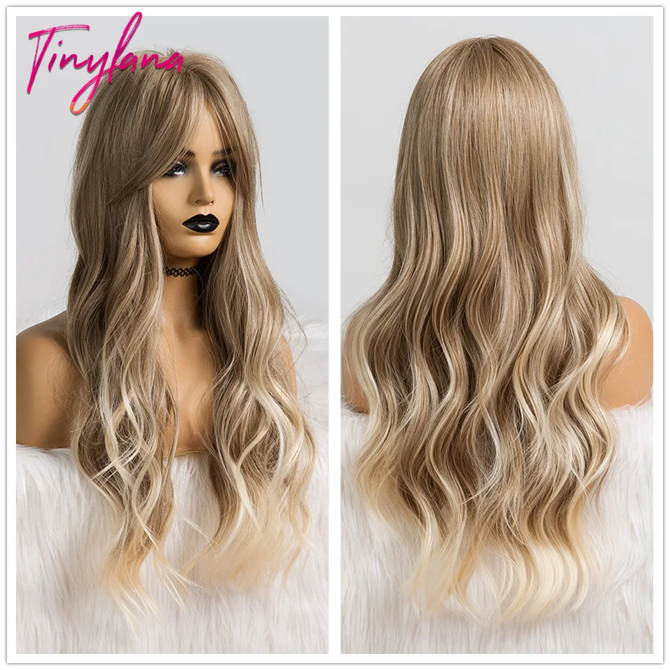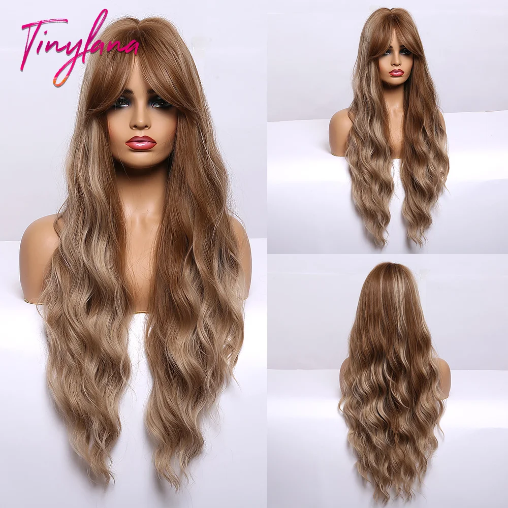 Парик женский синтетический с челкой, длинный светло-коричневый натуральный жаропрочный для косплея, с эффектом омбре, с водной волной, повседневный