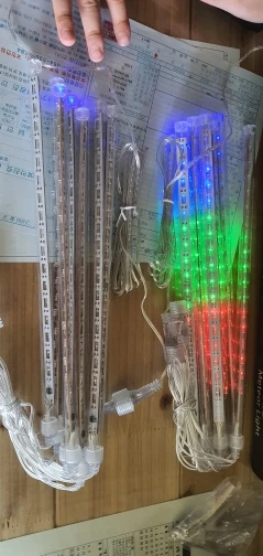 Название продукта: 30 см Солнечный метеоритный душ светильник Метод управления: светильник + переключатель Длина: 30 см/шт. Светодиодный фонарь: 8 шт. Количество СВЕТОДИОДНЫЙ: 18 светодиодный s /Tube Светодиодный светильник: 144 шт. Материал корпуса: пластик Уровень защиты: ip44 Батарея: 1,2 V/600MAH Светильник источник света: светодиод Мощность: Солнечная Каждый профиль находится в интервал: 30 см, без свинца, без линии 3 м, хвостовой части 17 см, общая длина 2,3 м Светильник Цвет: разноцветный "Красный-зелёный-желтый цвет (красный, зеленый, синий), синий светильник, белый светильник.