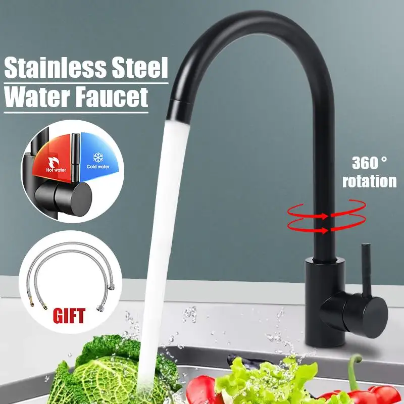 Смеситель кухонный из нержавеющей стали, черный кран для раковины, ...