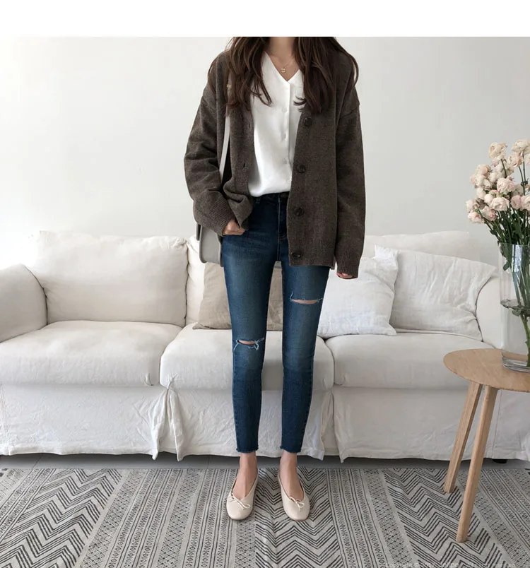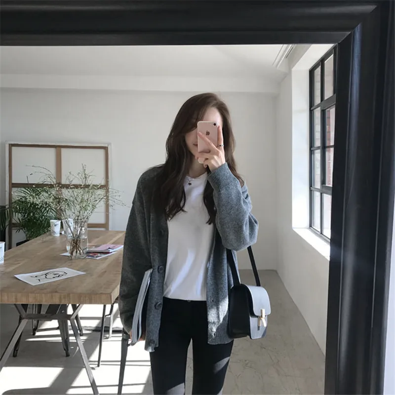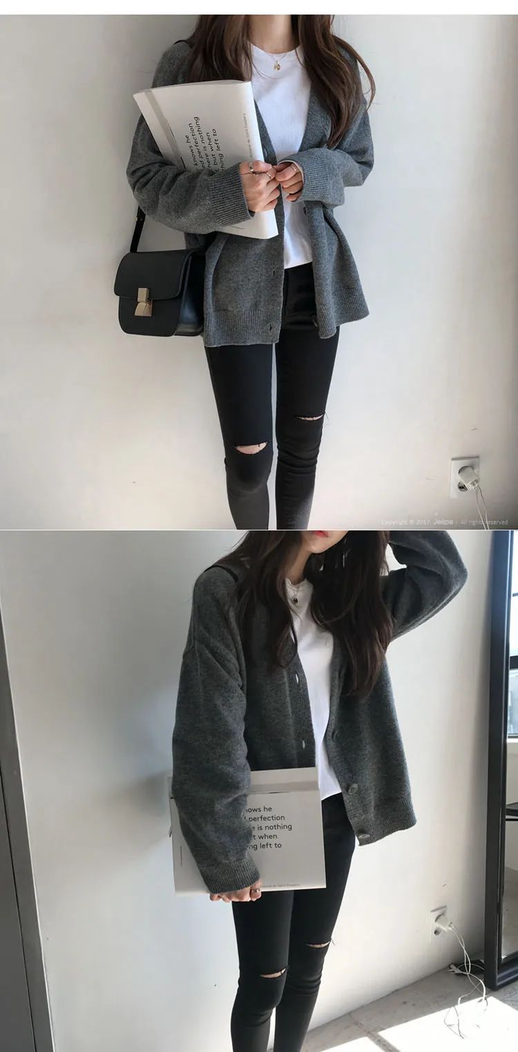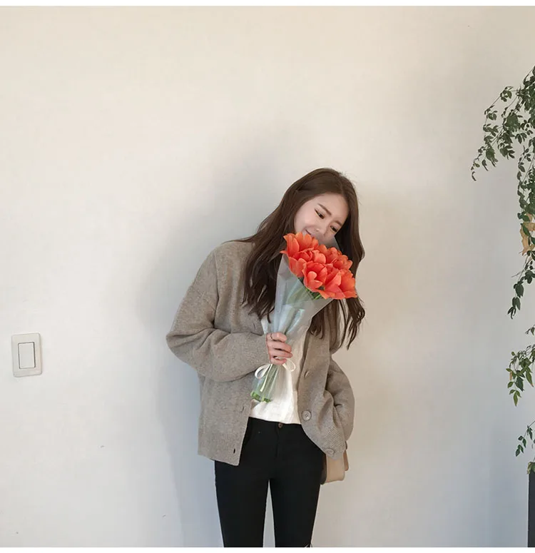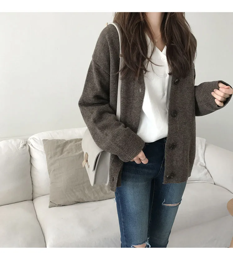 Женский однотонный кардиган, Повседневная Верхняя одежда с V-образным вырезом, модная однобортная трикотажная верхняя одежда с длинным рукавом, ES24, осень 2022