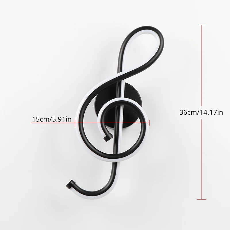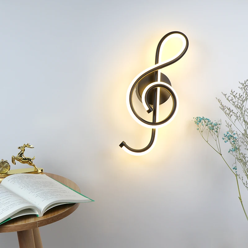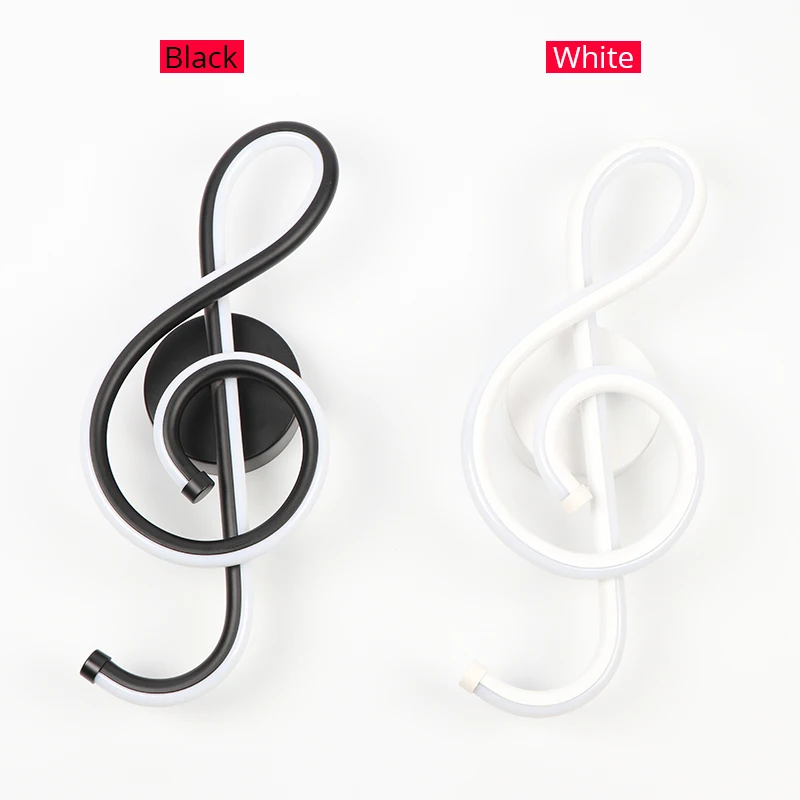 Светодиодная настенная лампа, светильник для спальни, прикроватного столика, музыкальный комнатный светильник в форме скрипичного ключа для дома и гостиной, цвет черныйбелый, 22 Вт