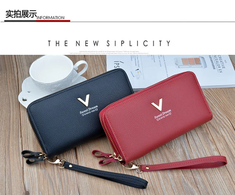 Женский кошелек, модная женская сумка с V-образным вырезом, Длинная женская новая сумка-клатч со звездами, Сумка с двойной молнией и ремешком на руку, несколько цветов