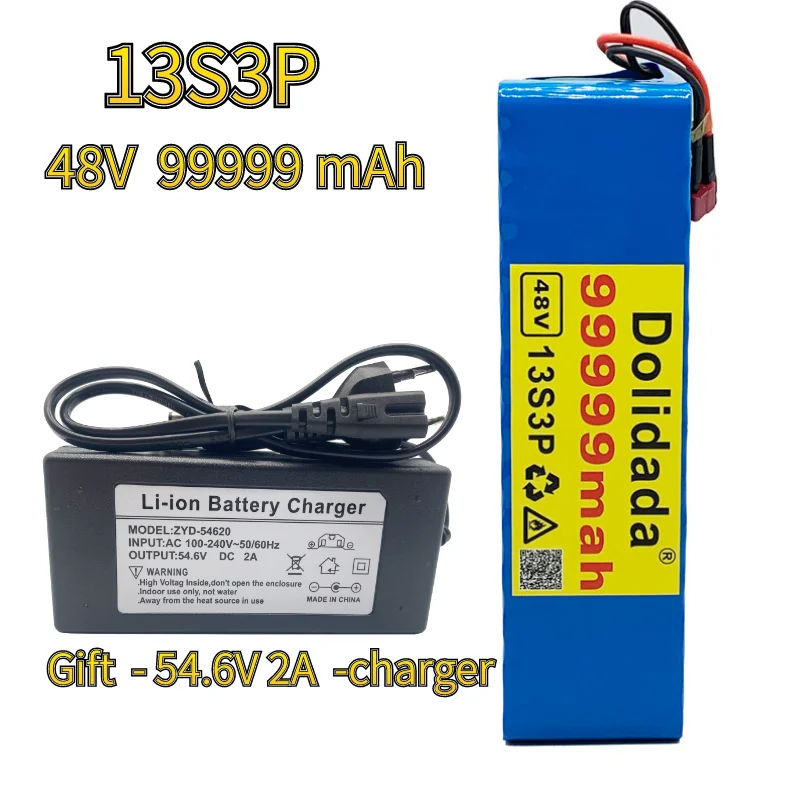 48 В, 99999 мАч, 1000 Вт, 13S3P, 48 В, 18650 _ для электровелосипеда, скутера с BMS + 54,6 в, 2 зарядных устройства