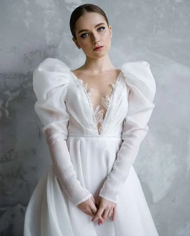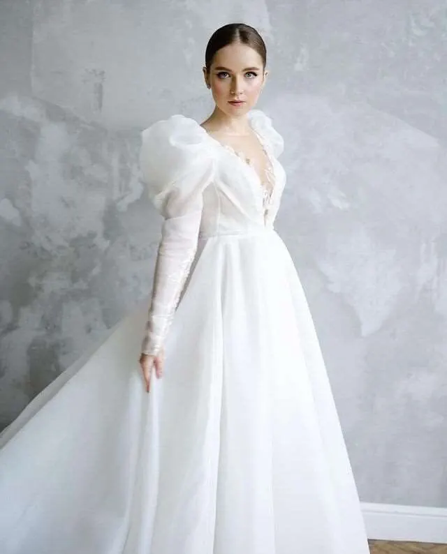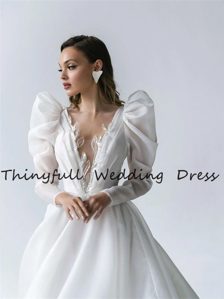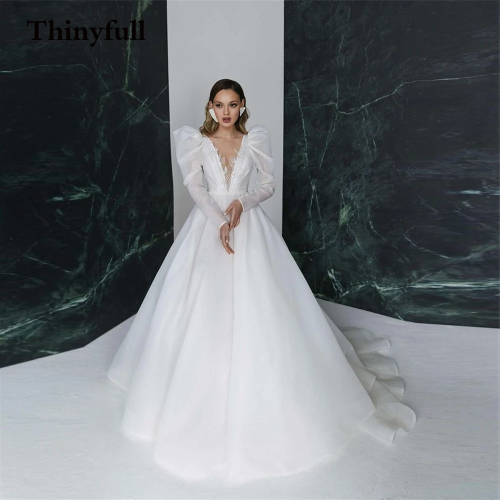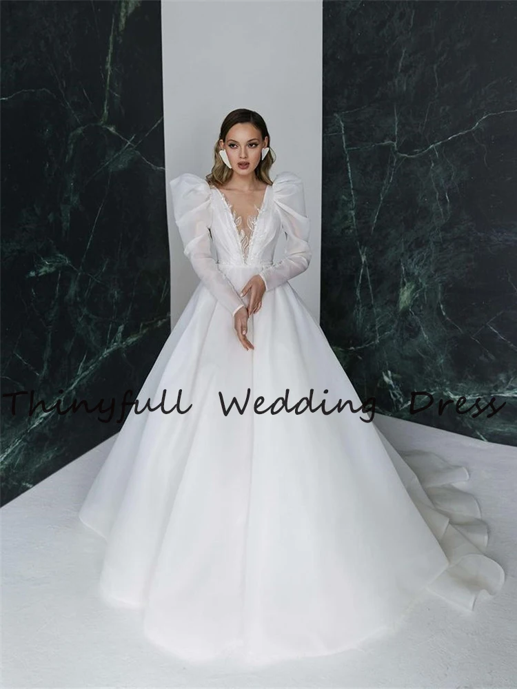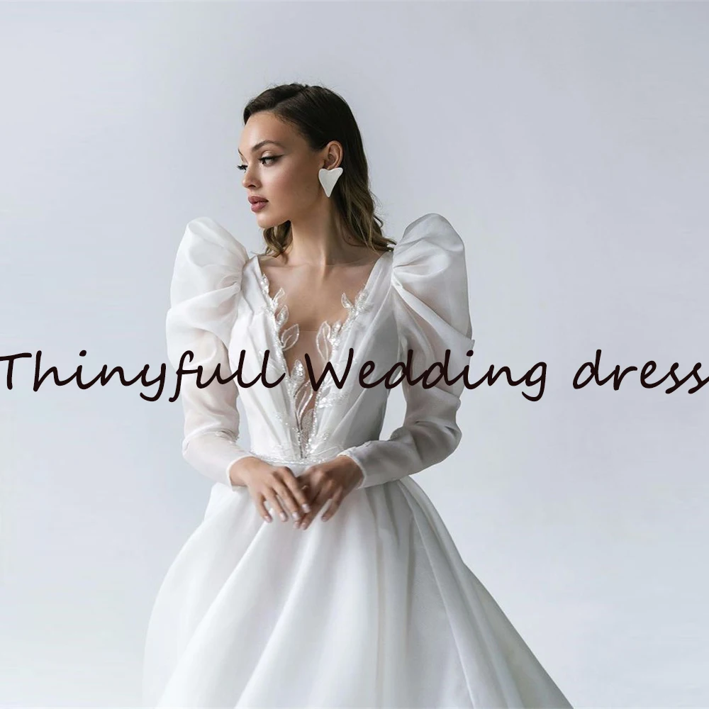 Современные свадебные платья принцессы с длинными рукавами и аппликацией в виде листьев, женское пляжное платье с V-образным вырезом для невесты, свадебные платья