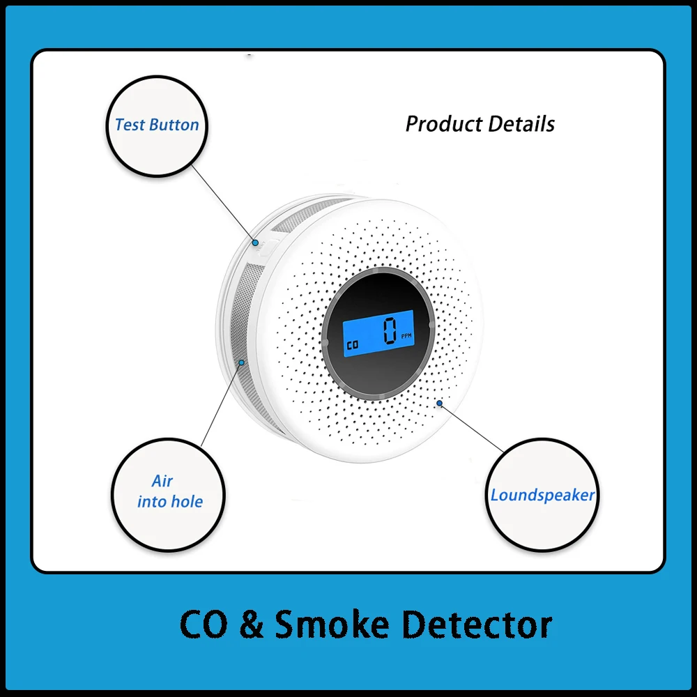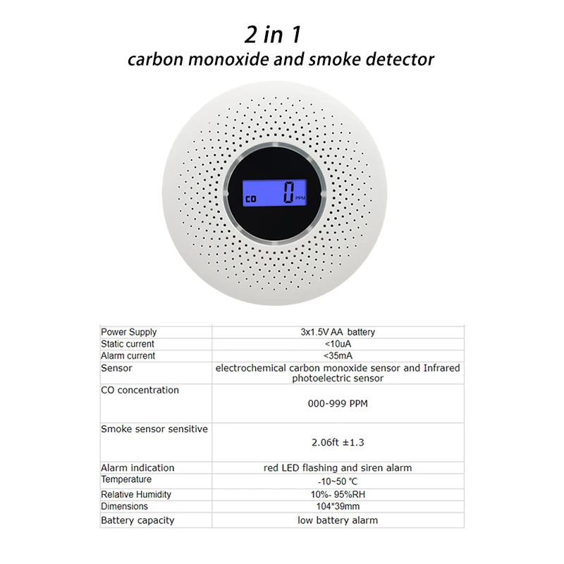 Фотоэлектрический детектор дыма 2 в 1, детектор чувствительного угарного газа, независимый детектор противопожарной сигнализации