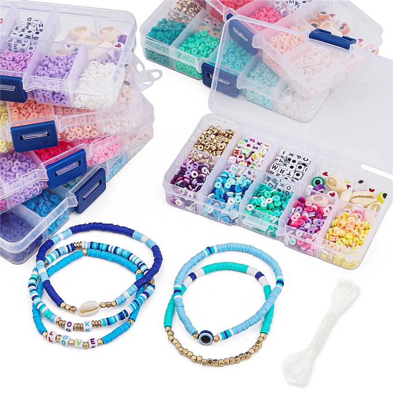 4 мм бусины из глины 1160 шт.компл. Разноцветные Пластиковые акриловые бусины с эластичным шнуром для браслетов Mking детские украшения сделай сам