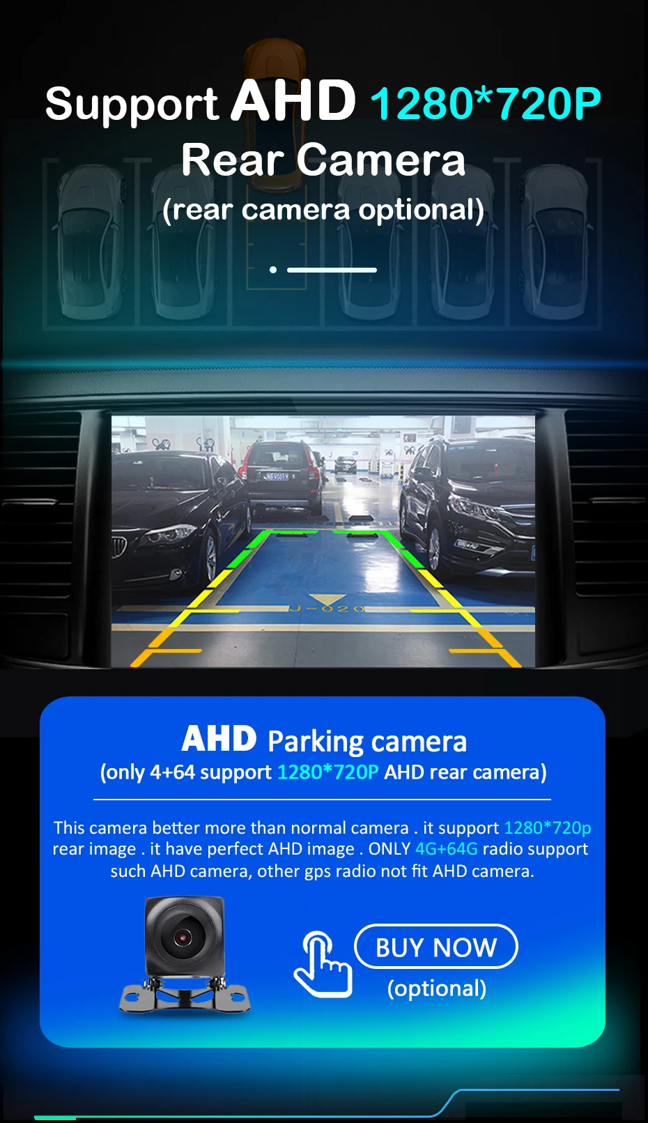 AHD камераВ нашем магазине все 4G + 64G радиоприемники поддерживают AHD 1280*720P камеру, эта камера является дополнительной функцией, если вам это нужно, вы можете нажать ниже фото и купить его вместе с радио.