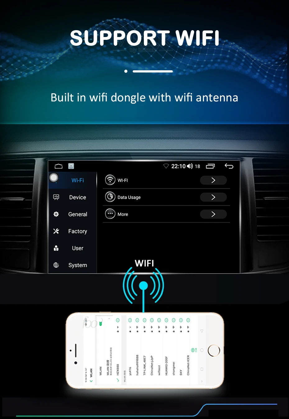 WI-FIРадио имеет встроенную функцию Wi-Fi, и вам нужно затянуть антенну перед использованием. (Напоминание: при звонке, если вы слышите много шума, пожалуйста, проверьте антенну WiFi, она может быть свободной)Wi-Fi радио не может подключаться к домашнему wifi. Подключите его к мобильный телефон wifi через точку доступа. Это лучший выбор.