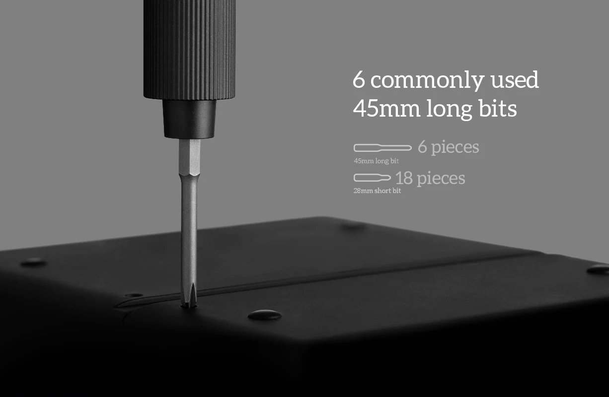 6 часто используемых 45 мм длинных бит справляются со сложными сценами, такими как глубокие отверстияРасширьте 6 общих бит из 24 до 45 мм, спокойно справляйтесь с более сложными условиями, такими как глубокие отверстия, узкие пространства и т. Д. Расширьте применимые варианты
