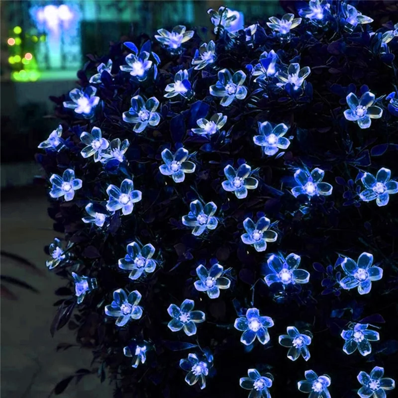 Гирсветильник да 7 м на солнечной батарее с вишневым цветком для украшения дома и сада, водонепроницаемая гирлянда для рождественской вечеринки, уличная гирлянда на солнечной батарее