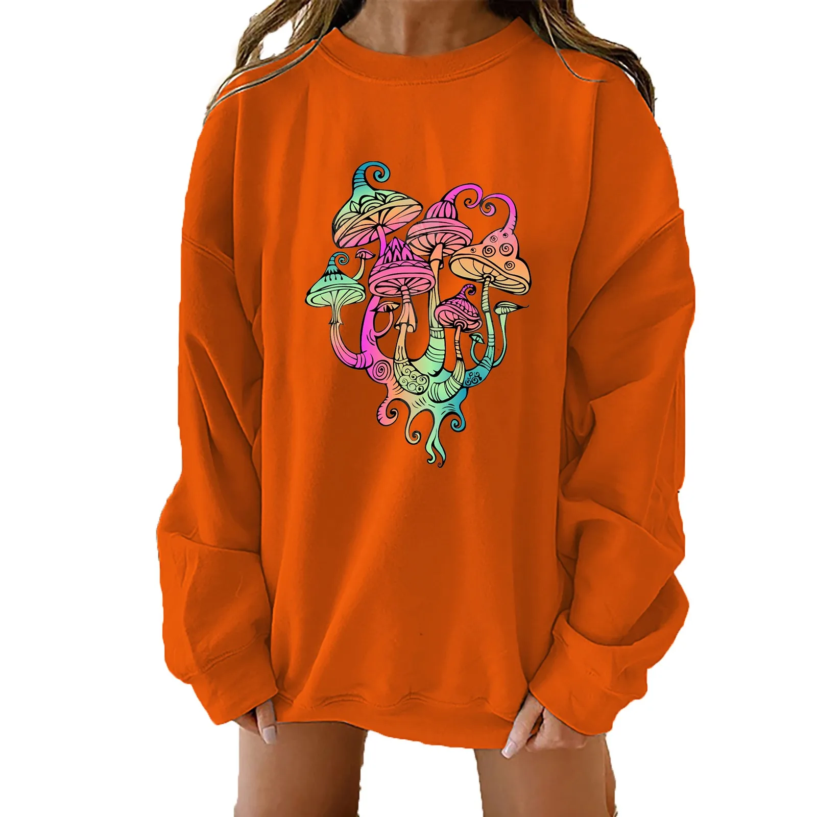 Женский свитшот с принтом в виде грибов, Осенний винтажный Свободный Топ с длинным рукавом