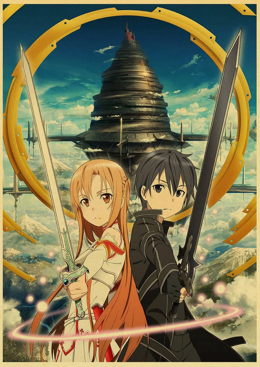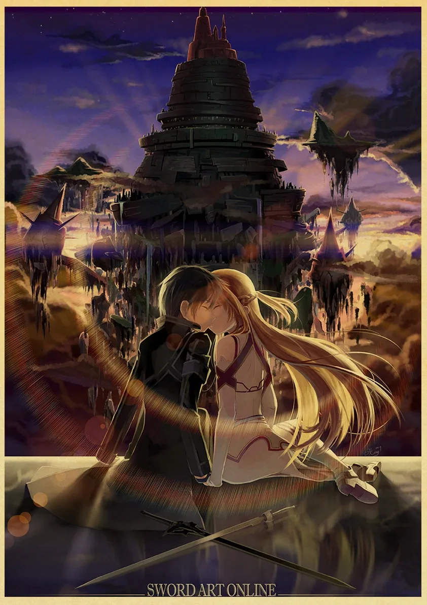 Винтажный Японский аниме меч искусство онлайн ретро постер крафт-бумага высокий дом гостиная Художественная печать настенные наклейки украшение