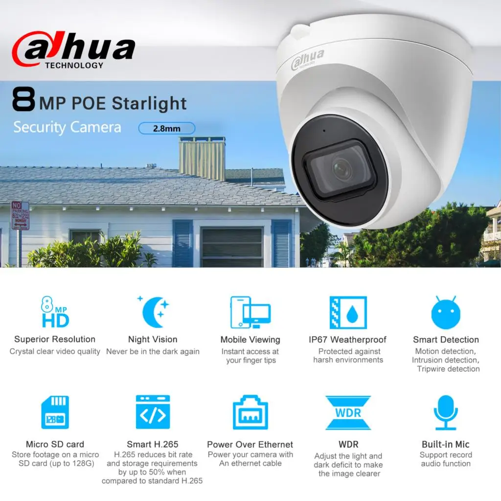 Камера видеонаблюдения Dahua, 8 Мп, 4K, встроенный микрофон, SD-карта